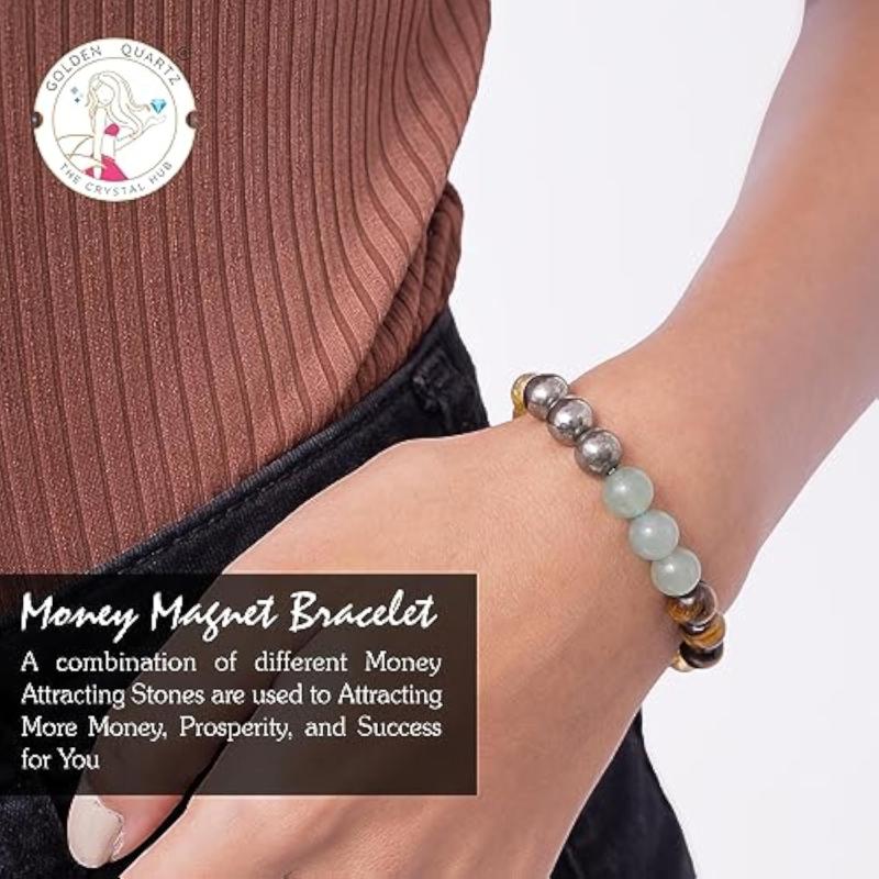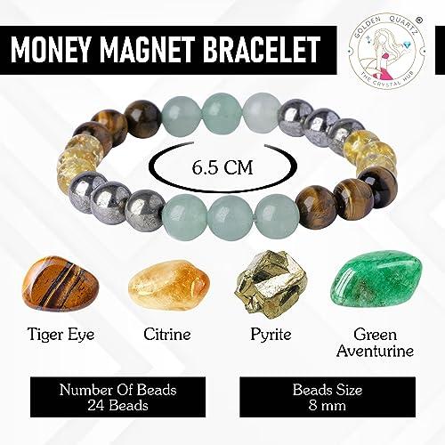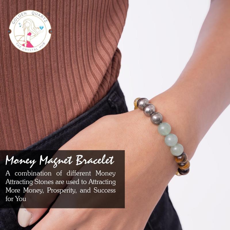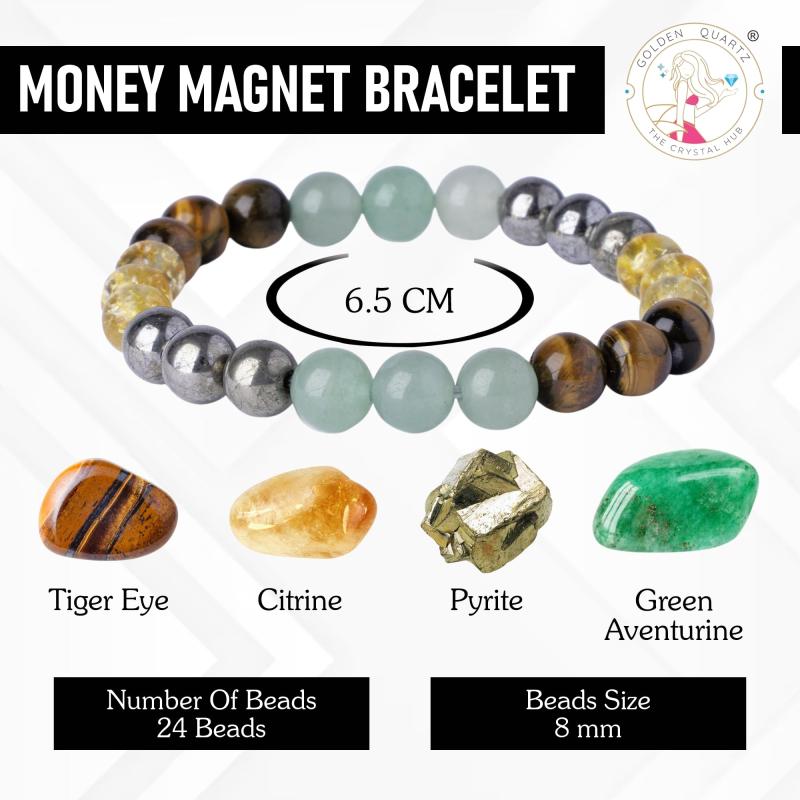 This Money Magnet Bracelet is designed to attract wealth, income, and prosperity. It is made with Citrine beads and features a stretch design for comfortable wear.