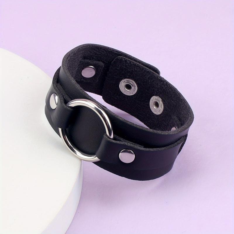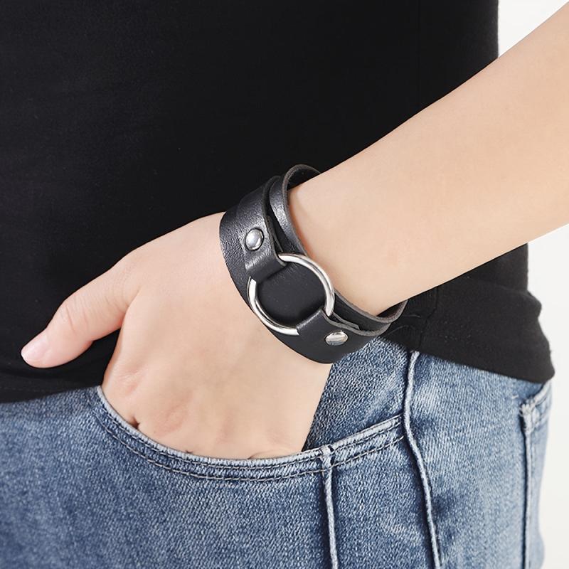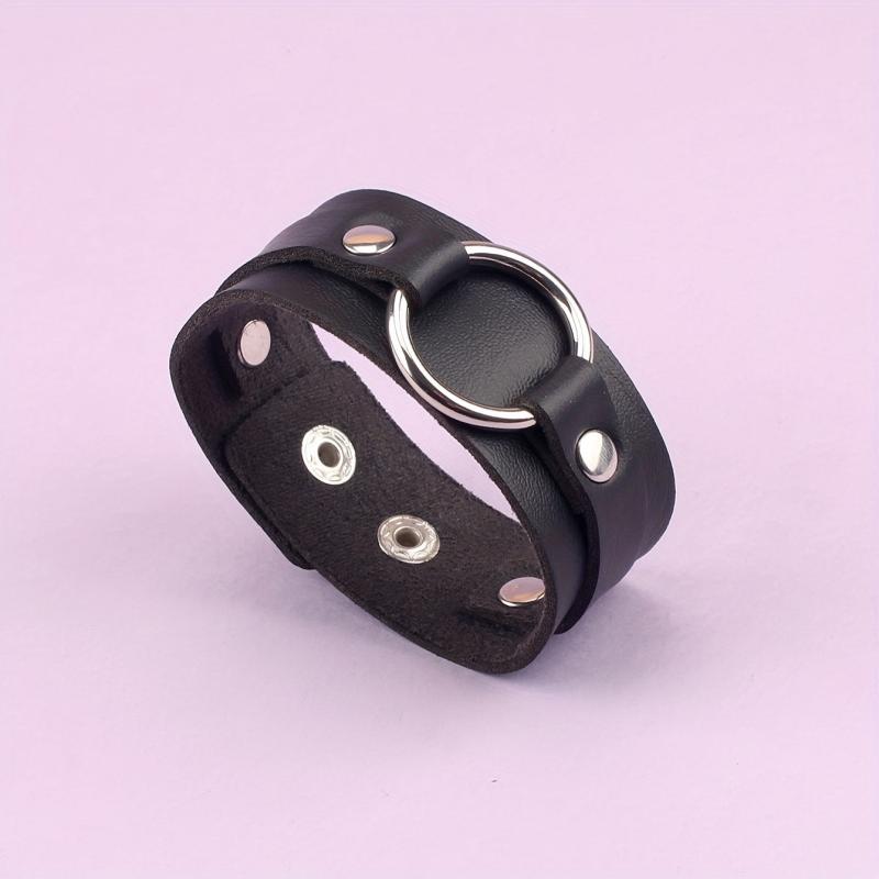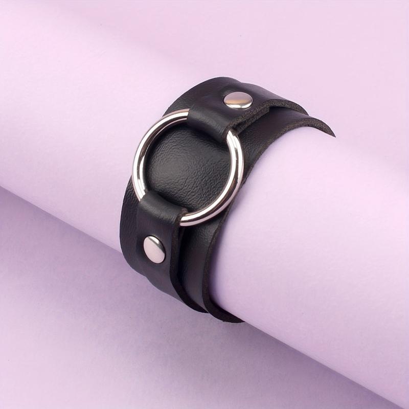 This round ring connection PU leather bracelet is a classic retro accessory suitable for daily wear. The neutral design makes it versatile for various outfits.
