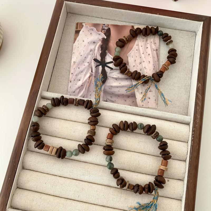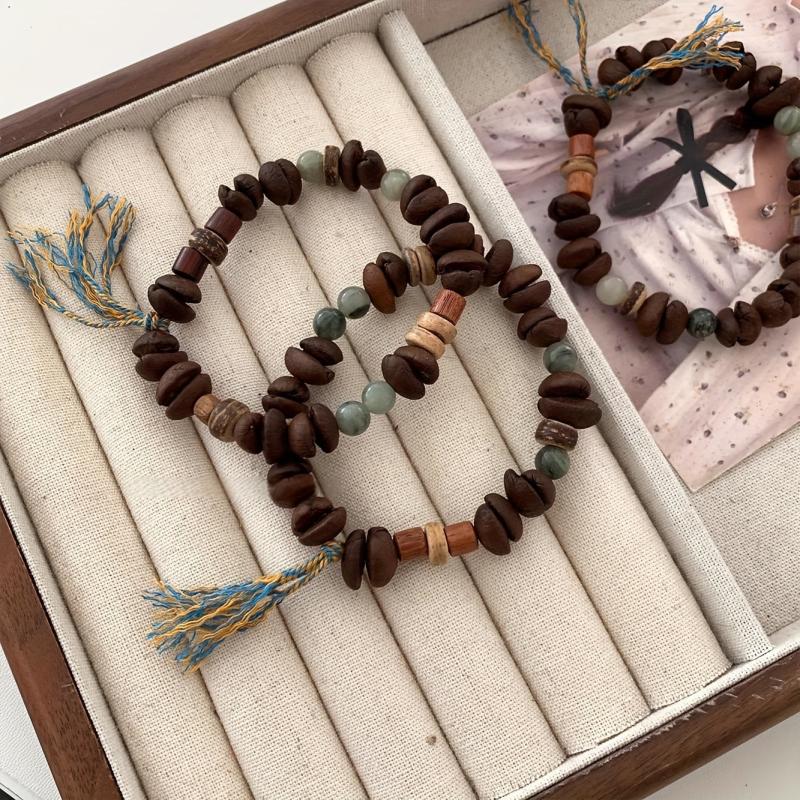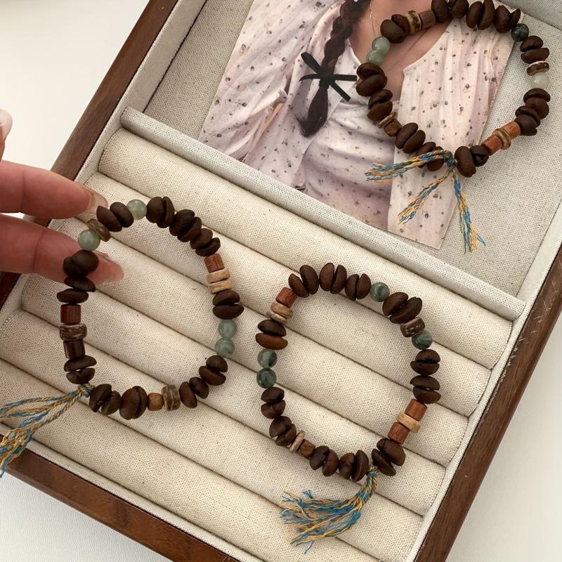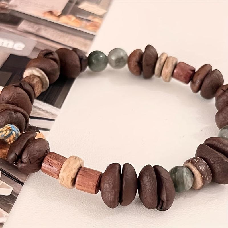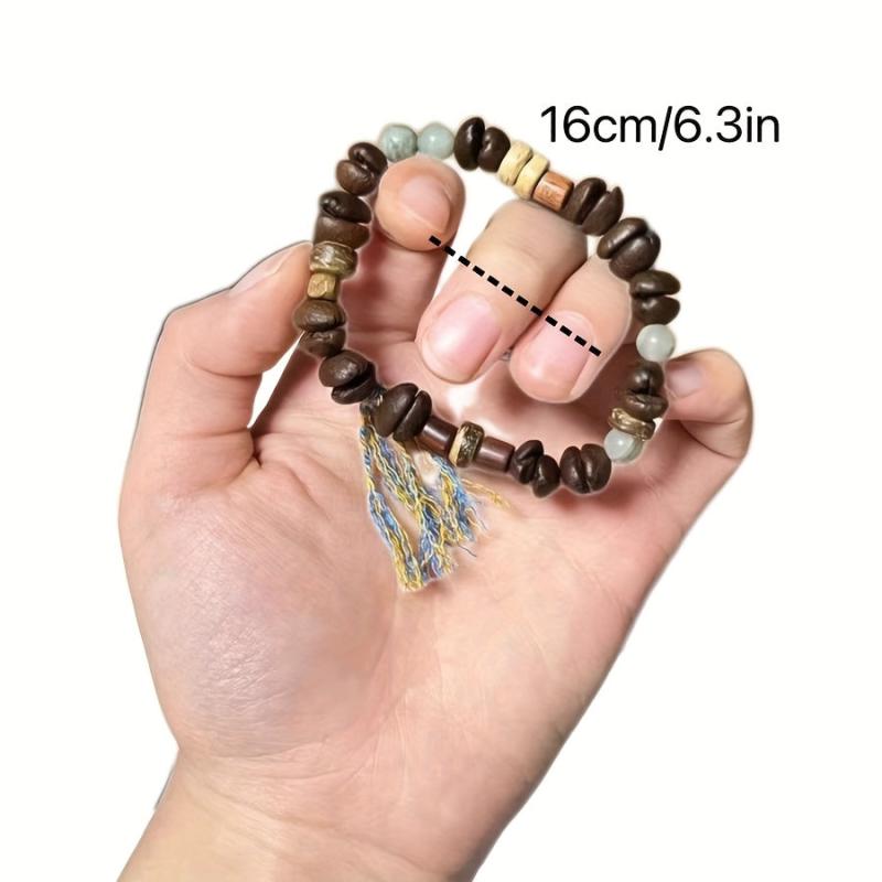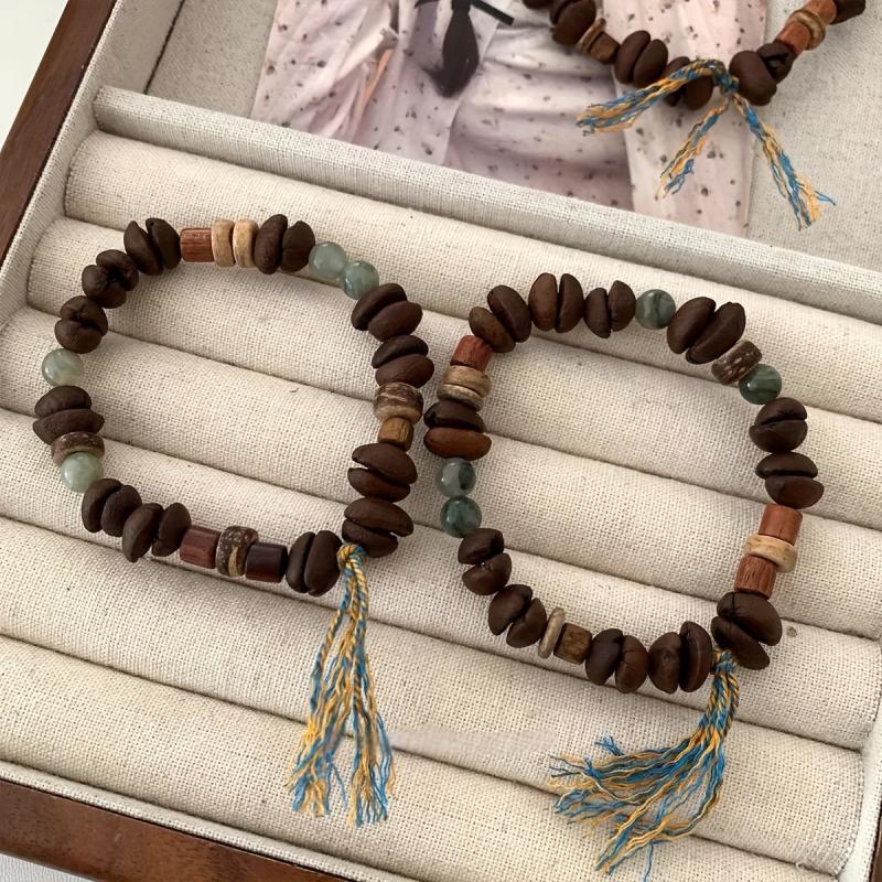 Adjustable ethnic style beaded bracelet featuring passion seed and sandalwood. Perfect for daily wear and accessorizing any outfit.