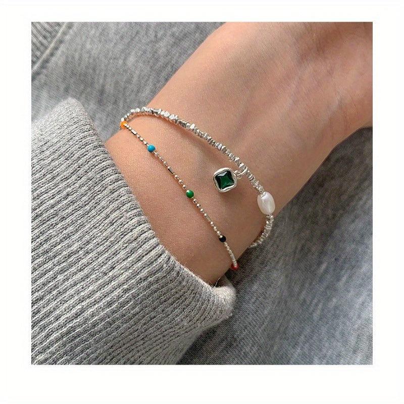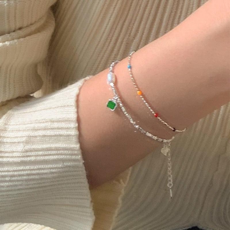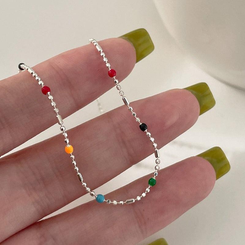 Elegant and eye-catching bracelet set featuring colorful bean balls and copper beads. Perfect for daily wear or vacation. Makes an ideal Valentine's gift.