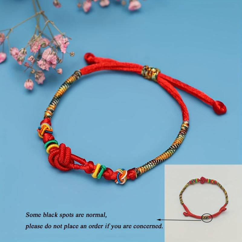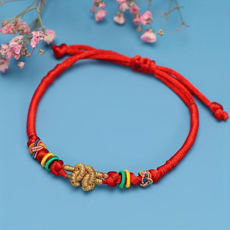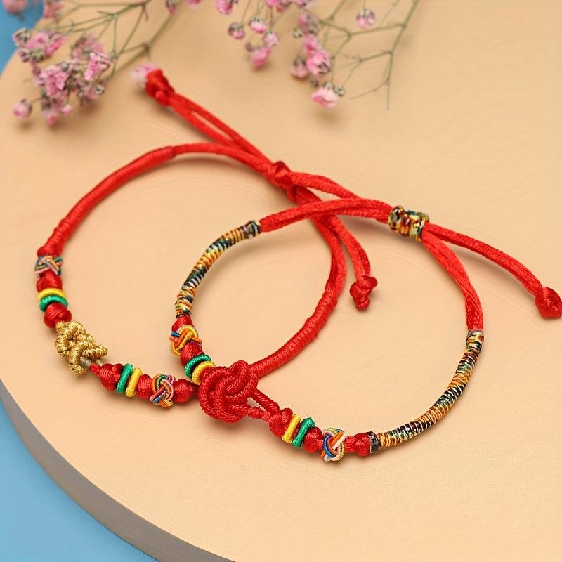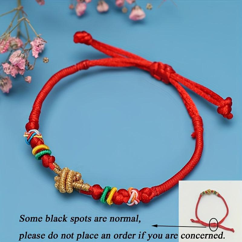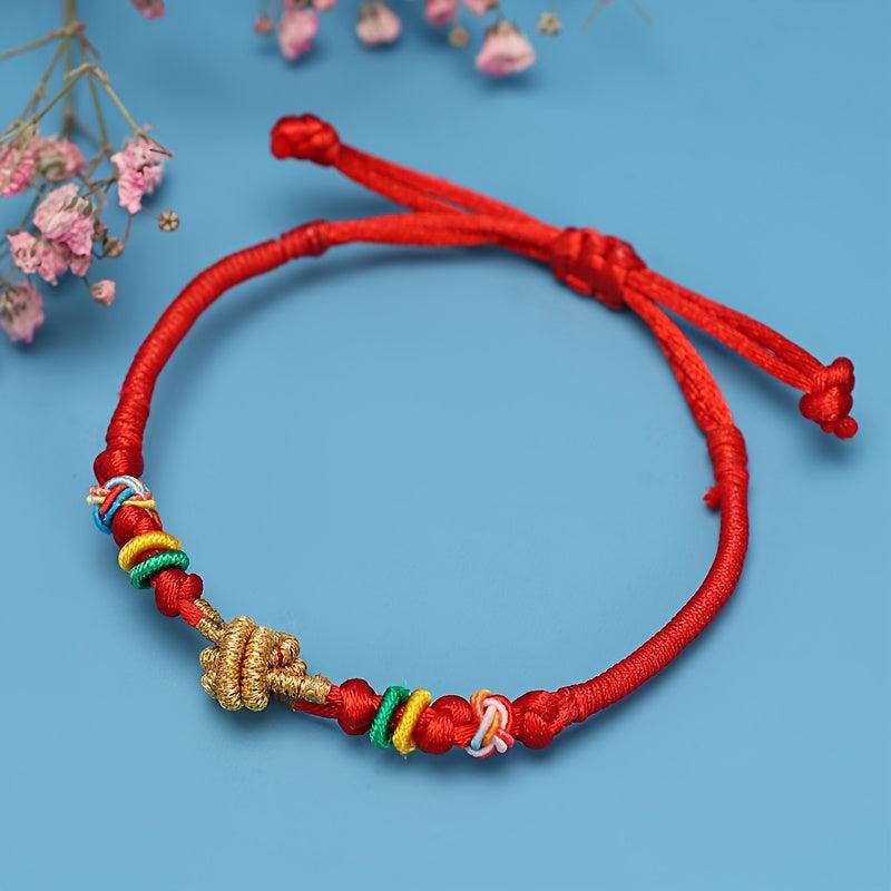 This colorful braided bracelet features a lucky red rope with a knot design, perfect for couples. It is ideal for casual attire and makes a great gift for loved ones.