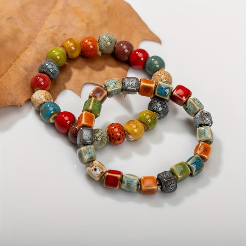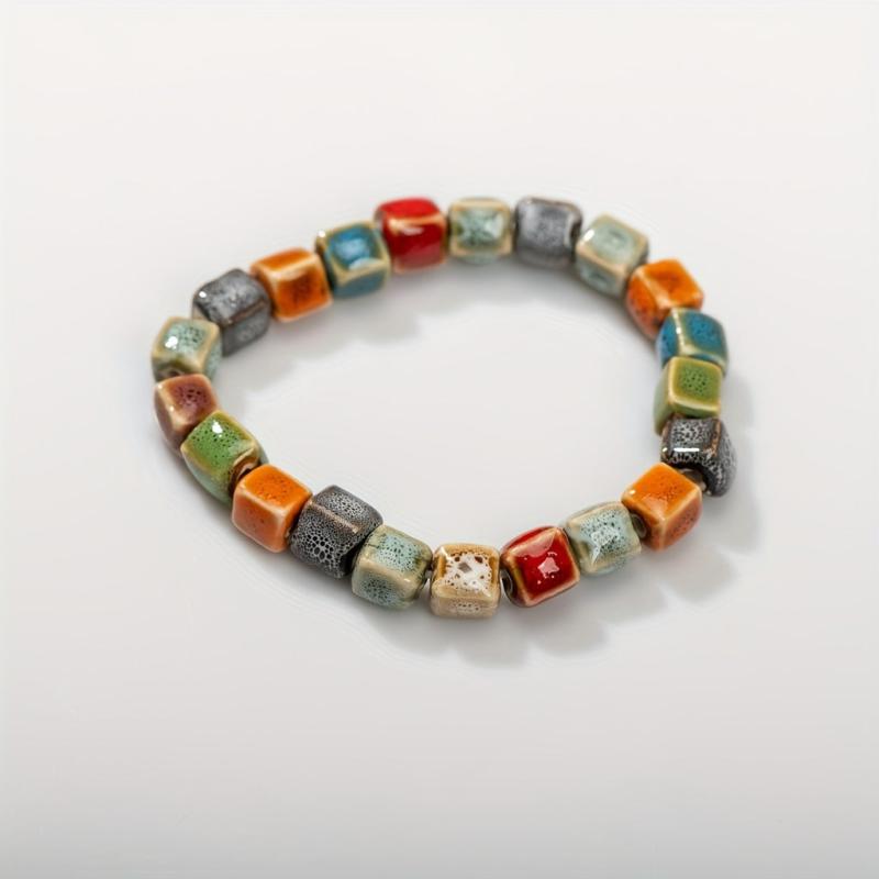 Add a pop of color to your outfit with this square ceramic beaded bracelet. Perfect for daily wear, this creative accessory will elevate your style.