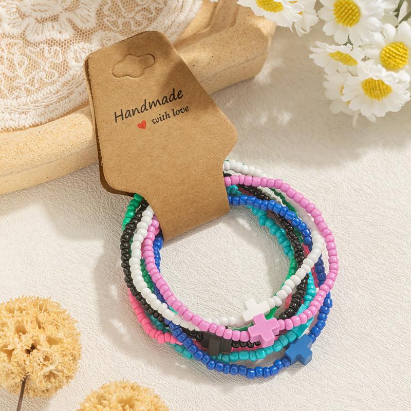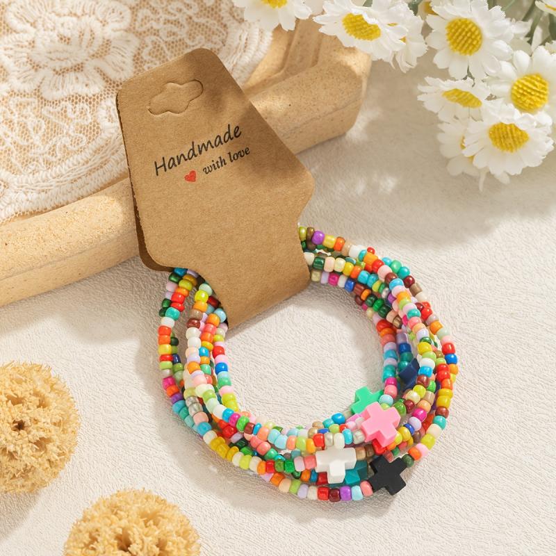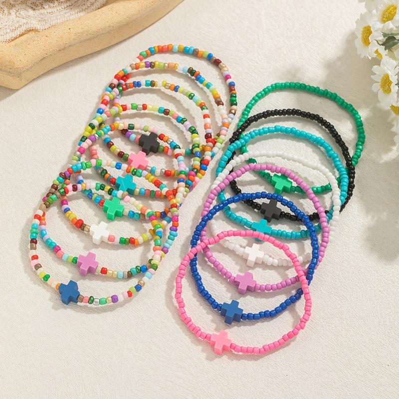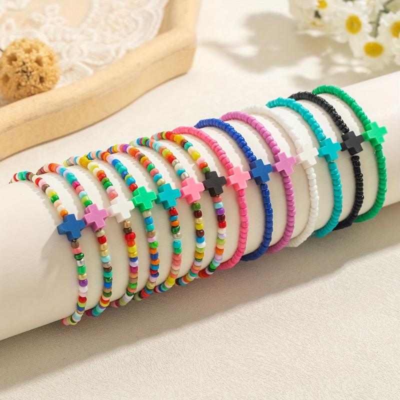 Elevate your style with this 14pcs resin beaded bracelet set featuring vibrant cross charms. Perfect for all seasons, ideal for parties, vacations, or everyday wear.