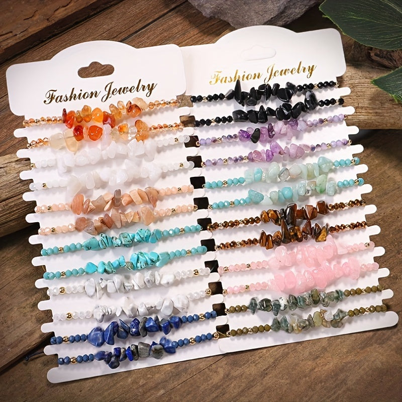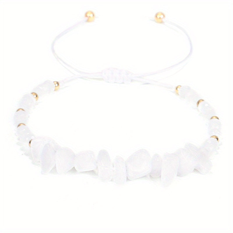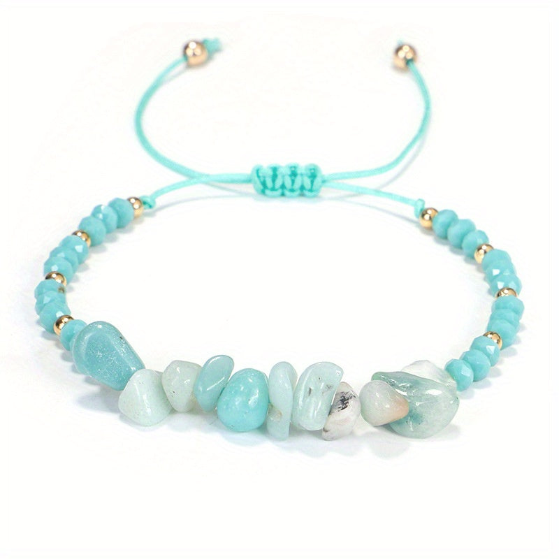 Express your unique style with this colorful braided bracelet featuring irregular crushed stone rice beads. Perfect for yoga enthusiasts and those who appreciate handmade jewelry.