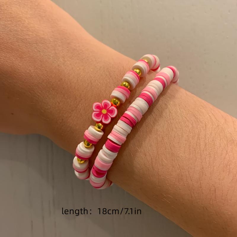 Add a touch of vibrancy to your style with this set of two elastic bracelets featuring beautiful floral designs.