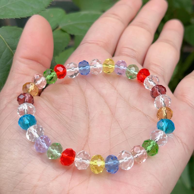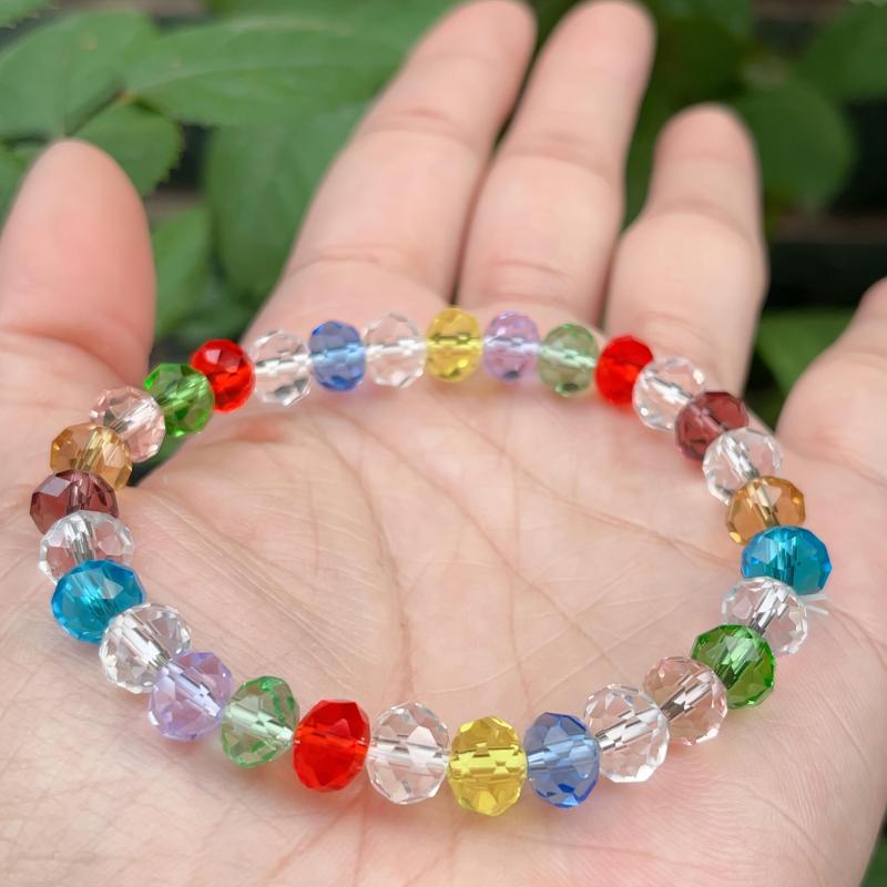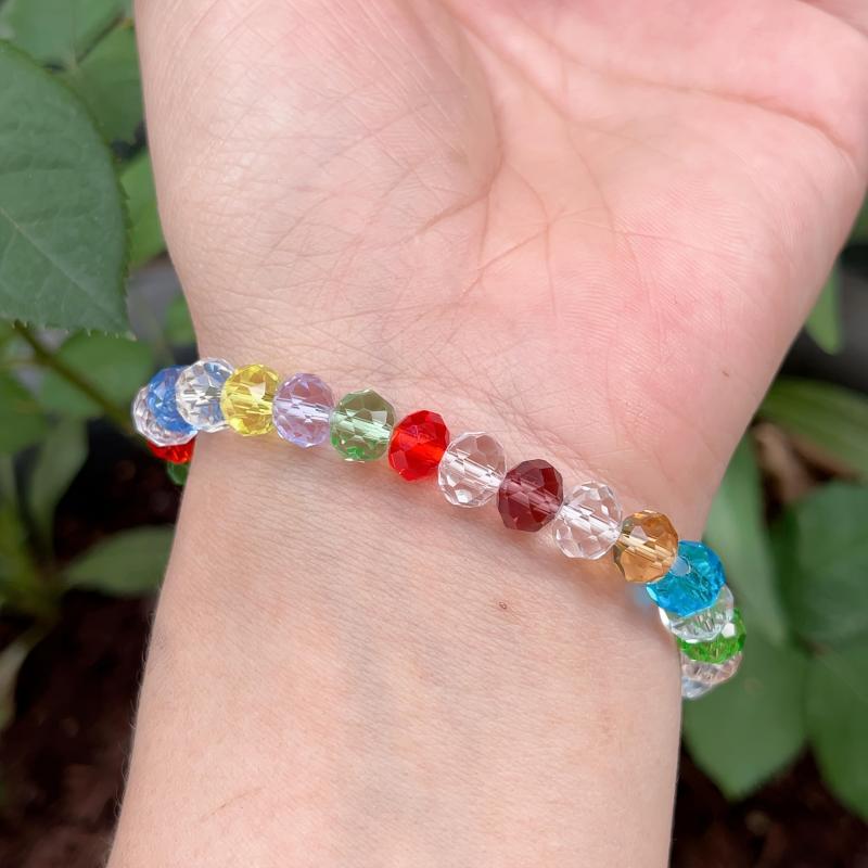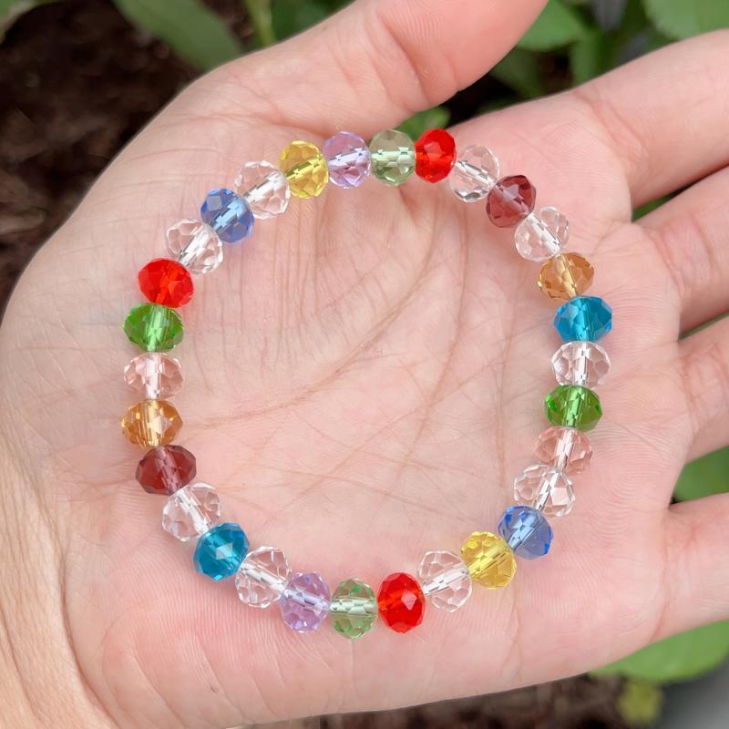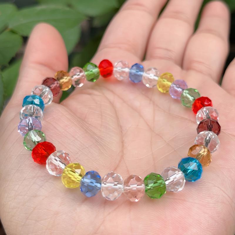 Add a pop of color to your outfit with this vibrant beaded bracelet. Perfect for casual attire and daily wear, this hand chain features red, green, yellow, and more glass beads.