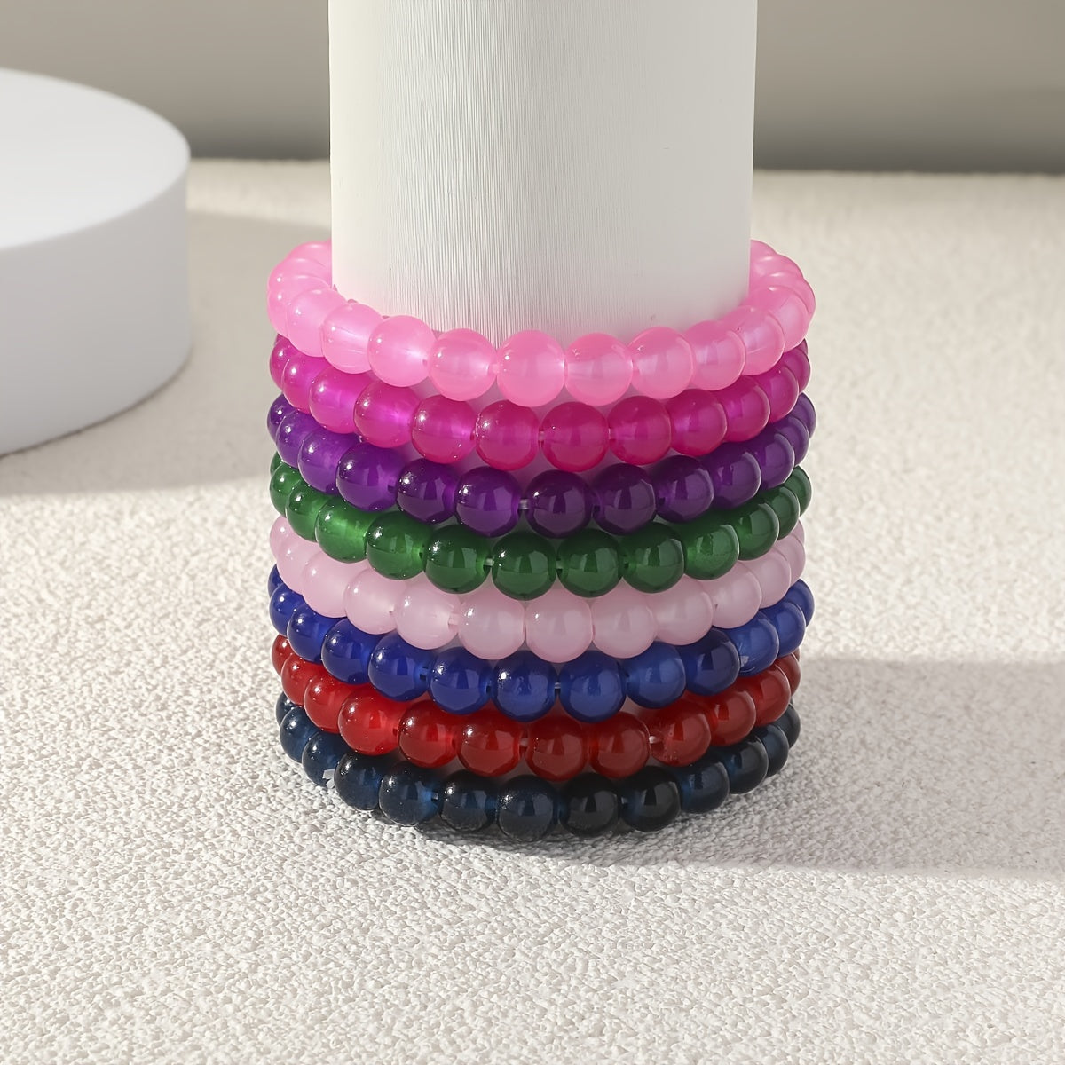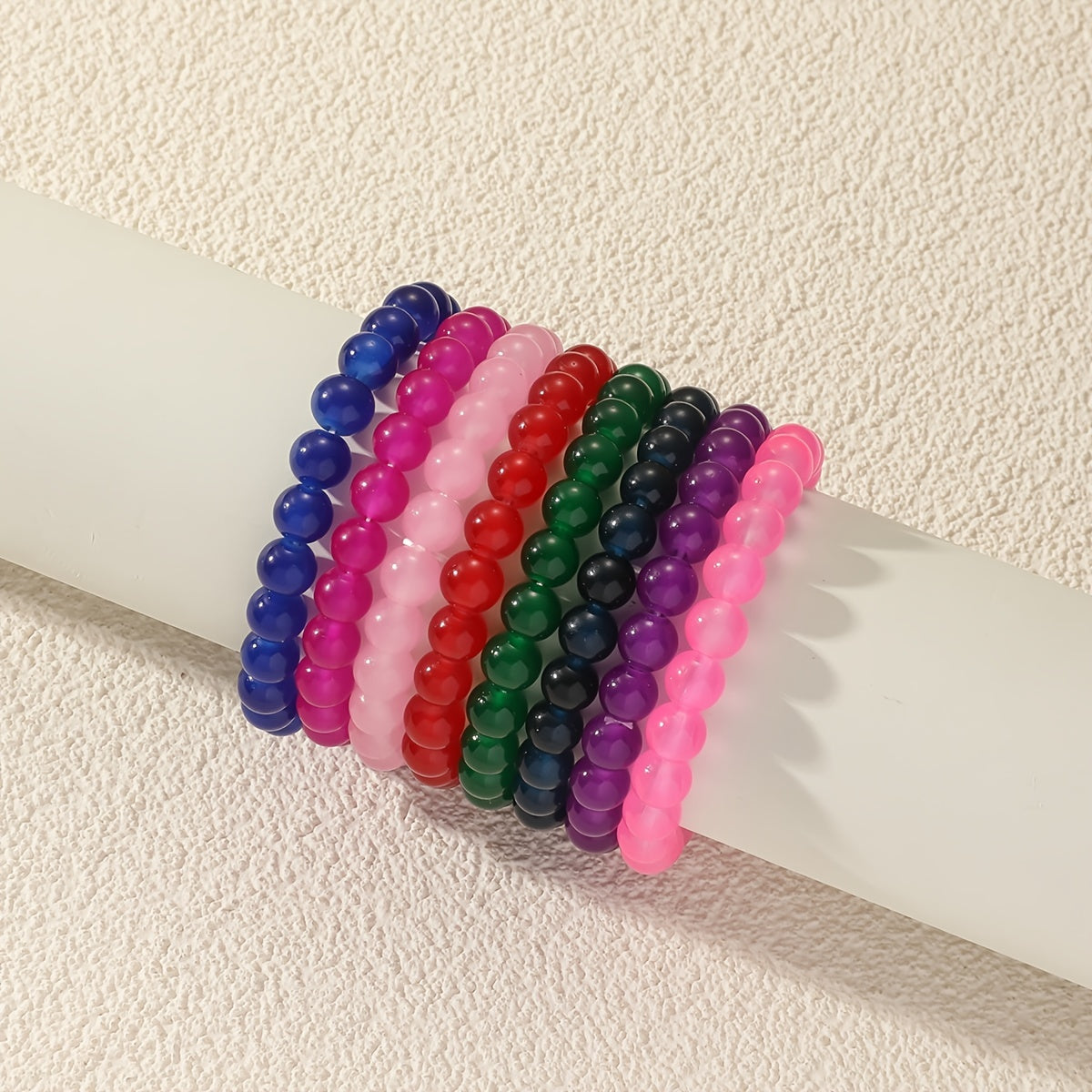 This colorful bracelet features an elastic string with vibrant bead accents. Perfect for women who love a pop of color!