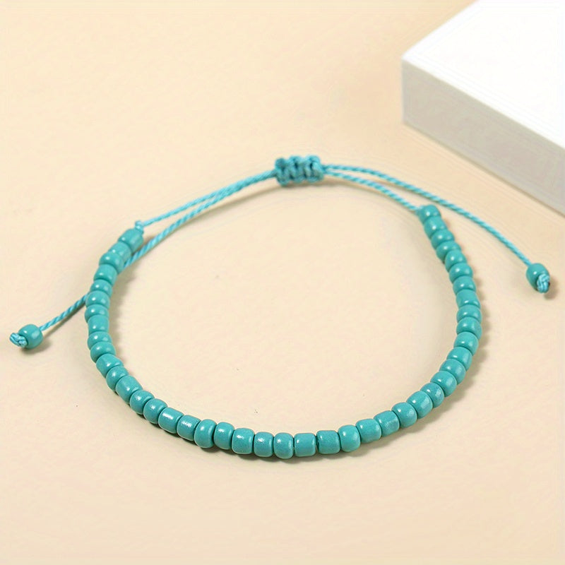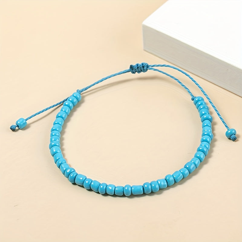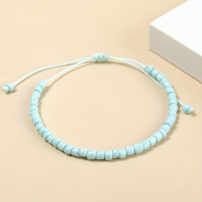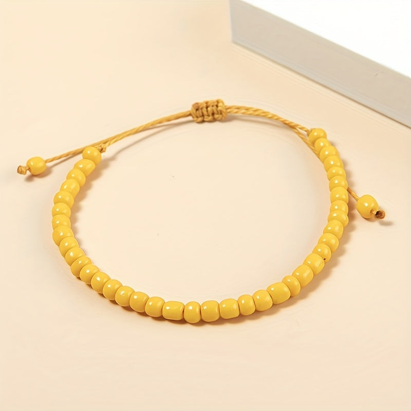 Add a bohemian touch to your look with this adjustable braided bracelet adorned with multicolor rice beads. This hand decoration jewelry is perfect for adding a pop of color to your outfit.