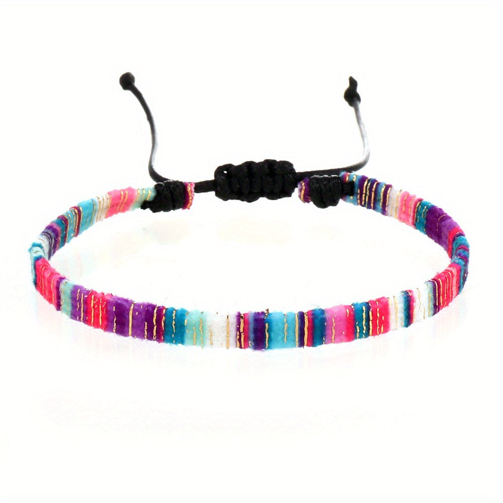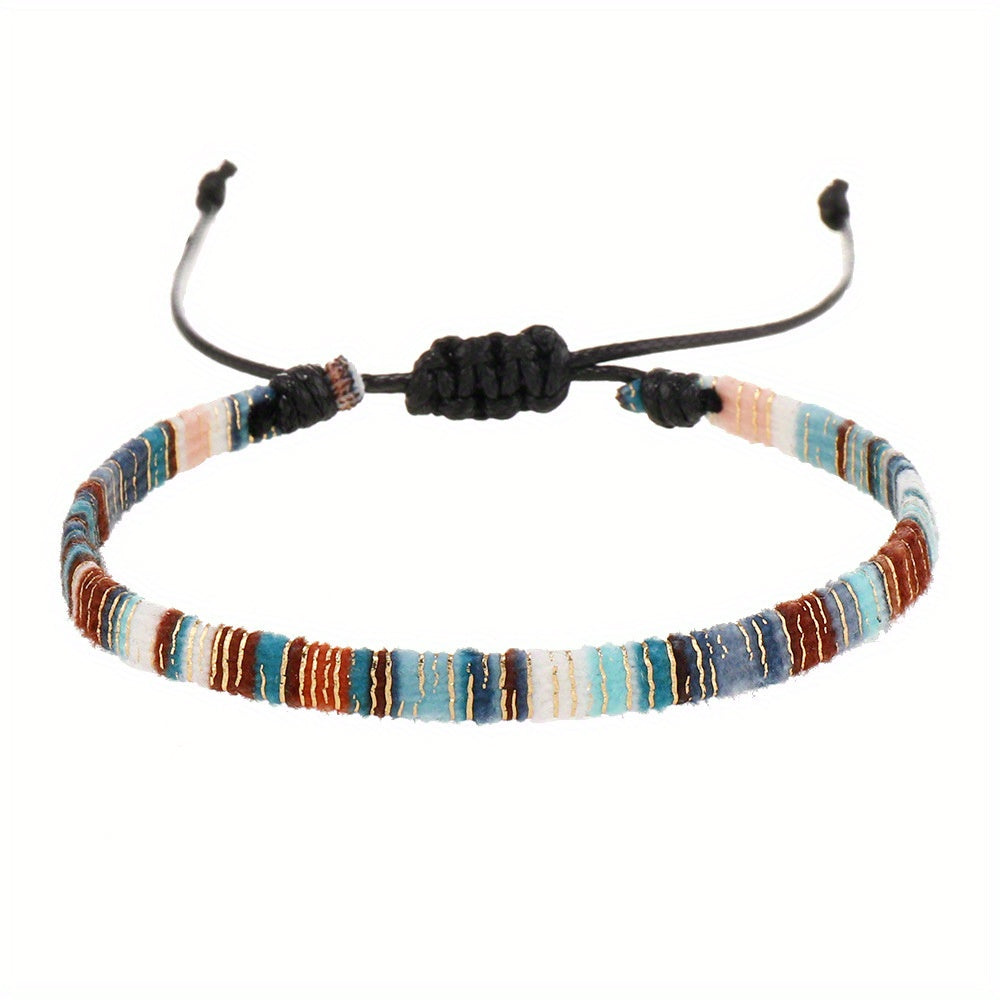 This colorful woven bracelet anklet is a stylish accessory for men. It features vibrant colors and a durable design that is perfect for everyday wear.