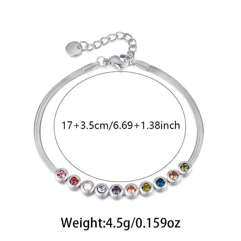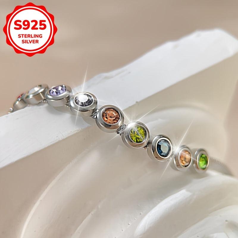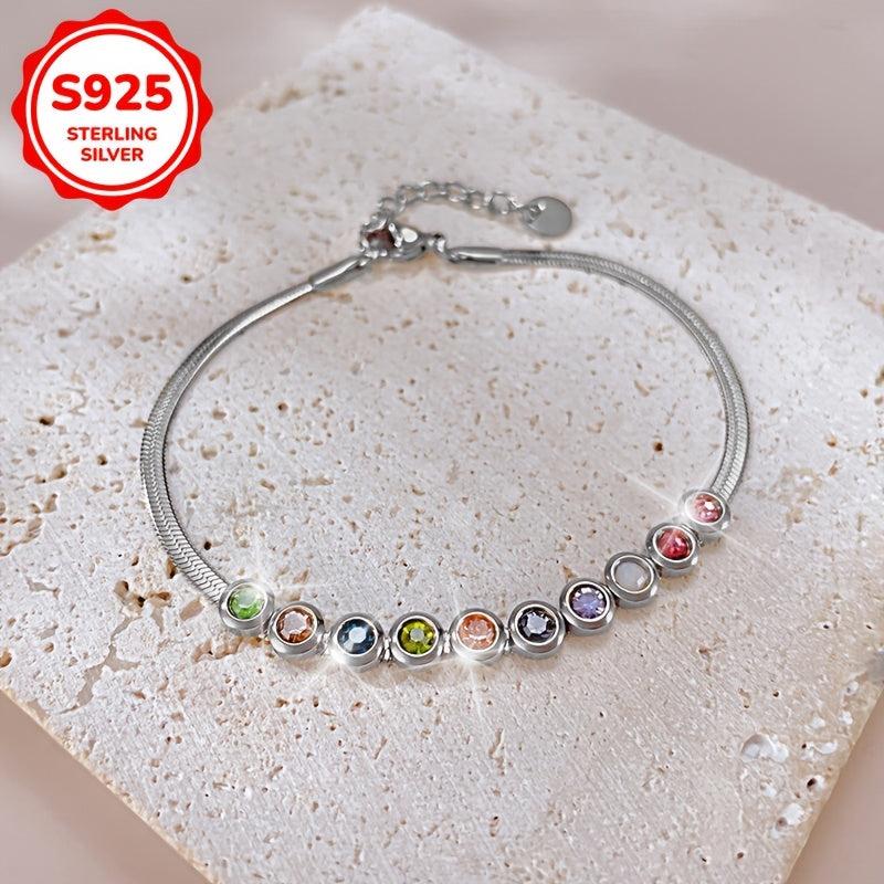 Add a touch of sparkle to your look with this women's bracelet. Inlaid with colorful Synthetic Zirconia, this snake bone bracelet is crafted in 925 Silver. It weighs 4.5g, making it perfect for daily wear or holiday parties.