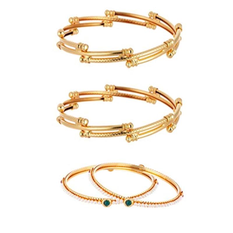 This pack includes a combo of Victoria bangles, pearls bangles, and plated bangles suitable for women. It's a perfect choice for adding a stylish touch to your outfit.