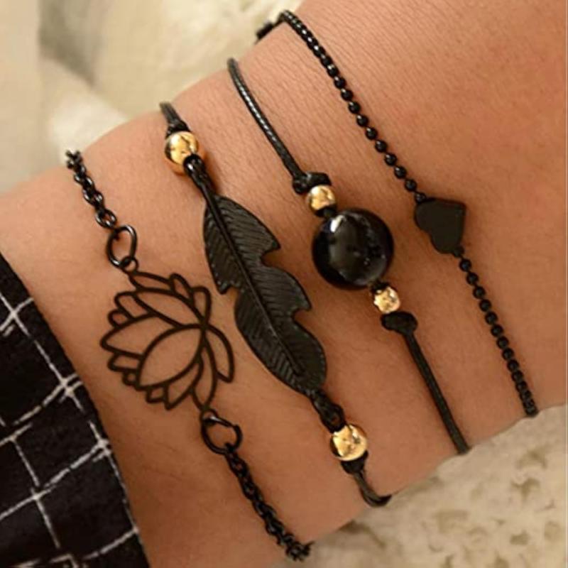Add a touch of modern style to your outfit with this set of 4 silver toned bracelets. Perfect for everyday wear or special occasions.
