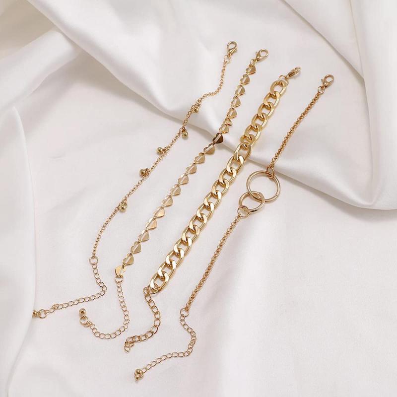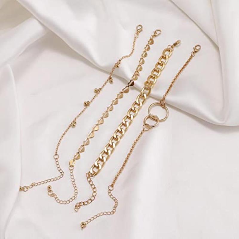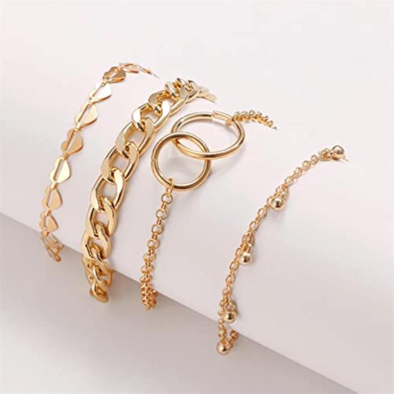 Elevate your style with this set of 4 contemporary bracelets featuring plated heart designs. Perfect for daily wear or special occasions.