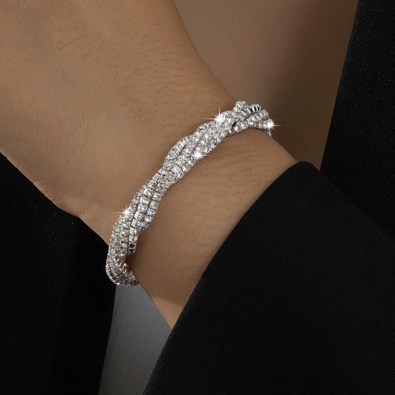 Elegant and versatile bracelet suitable for daily wear or weddings. Made with high-quality copper base and sparkling rhinestones, this bracelet is perfect for all seasons.