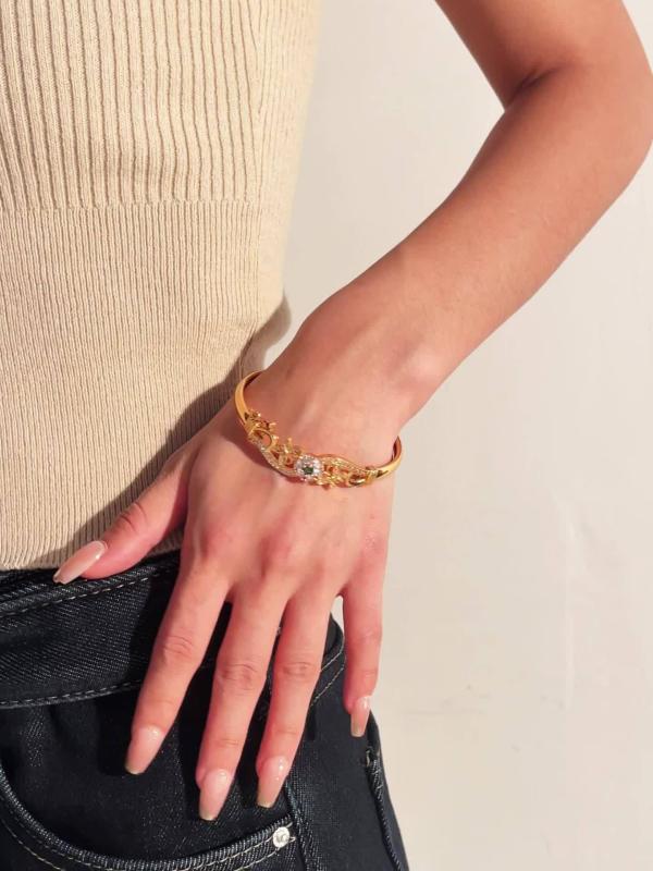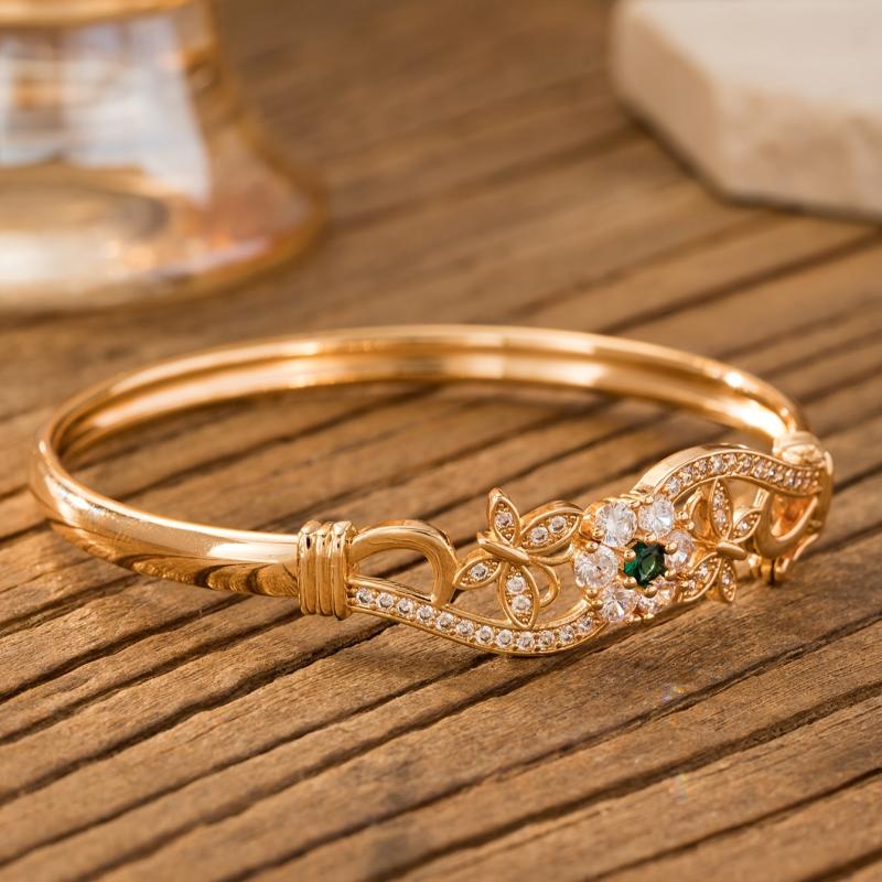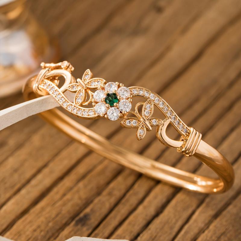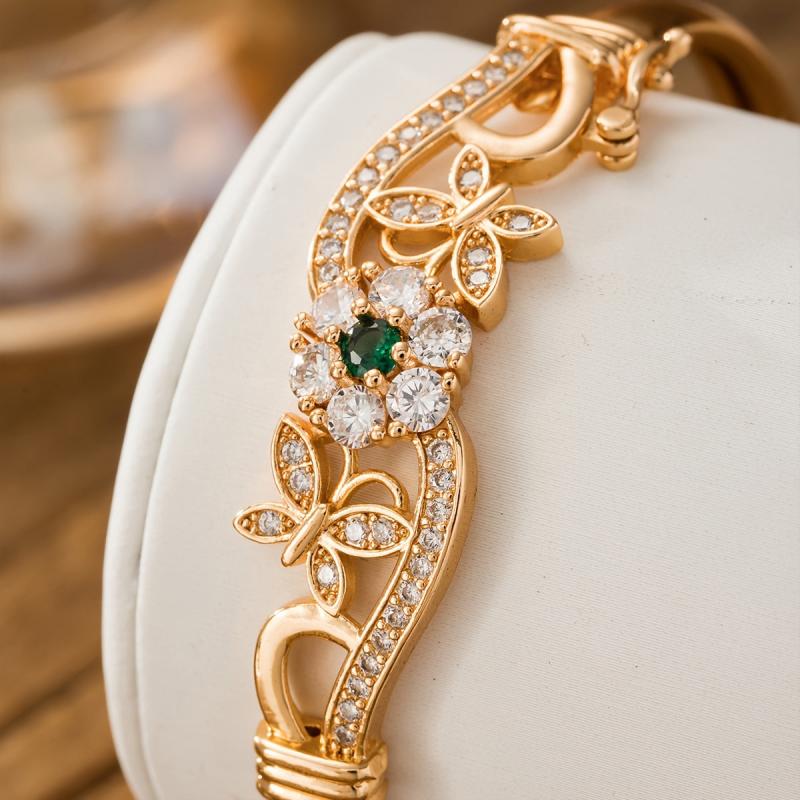 Add a touch of elegance to your spring and summer look with this high-quality copper bracelet featuring synthetic zirconia flower and butterfly design. It makes the perfect gift for Mother's Day.
