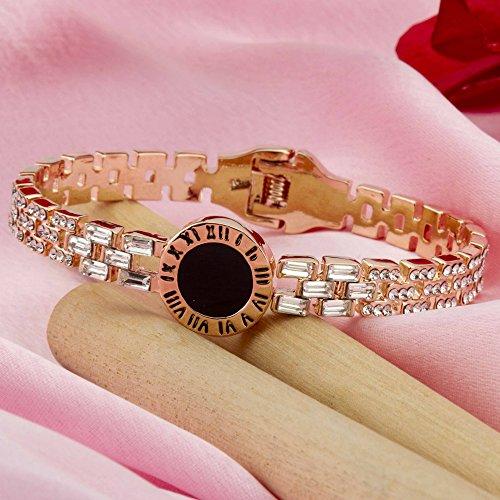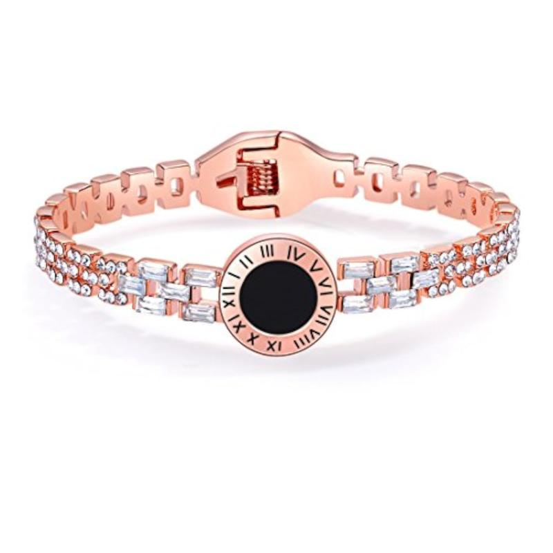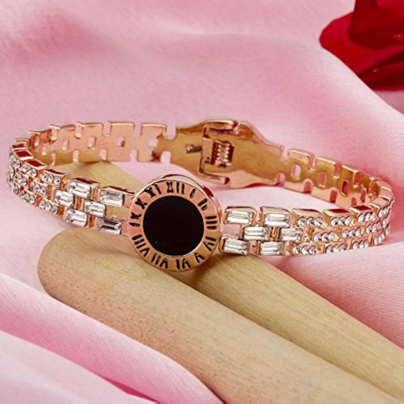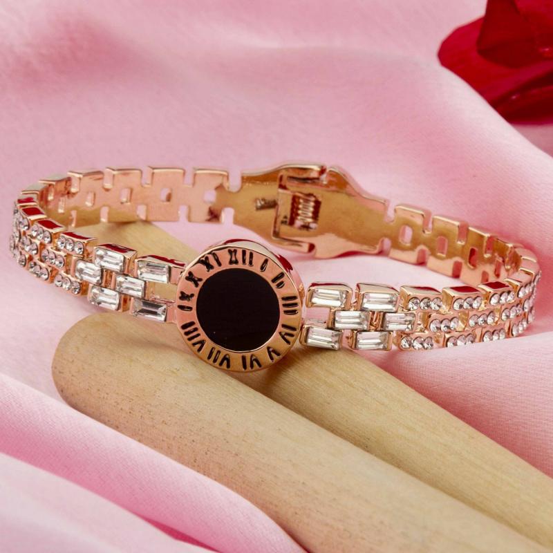 Elegantly designed charm bracelet featuring copper rose and cubic zirconia stones. Perfect for adding a touch of sparkle to any outfit.