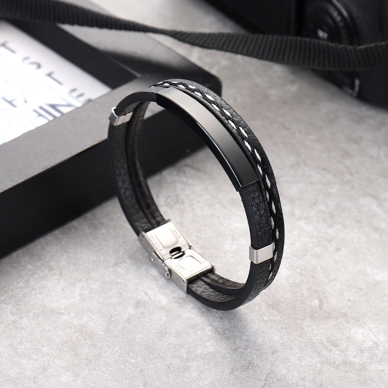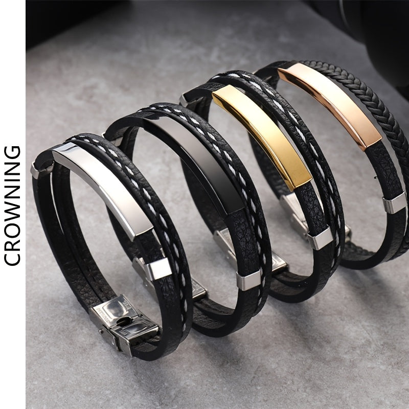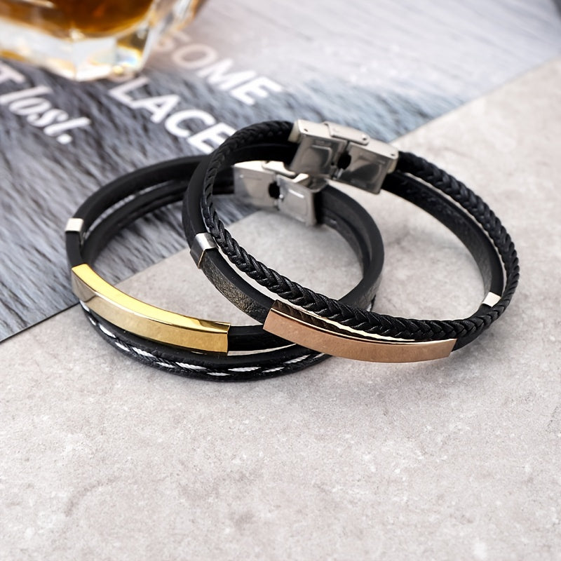 This stylish couple bracelet features a unique design with stainless steel accents and adjustable leather rope braiding. Perfect for boys, it makes a great gift for any occasion.