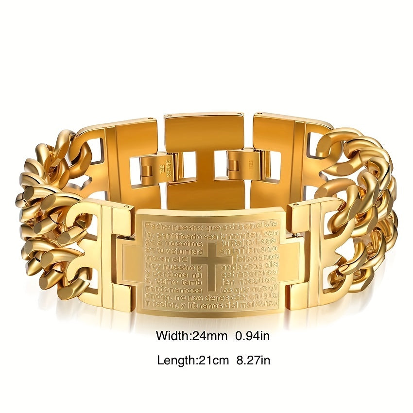Elevate your style with this sleek stainless steel bracelet featuring a double row of cowboys. Perfect for the modern western fashion enthusiast.