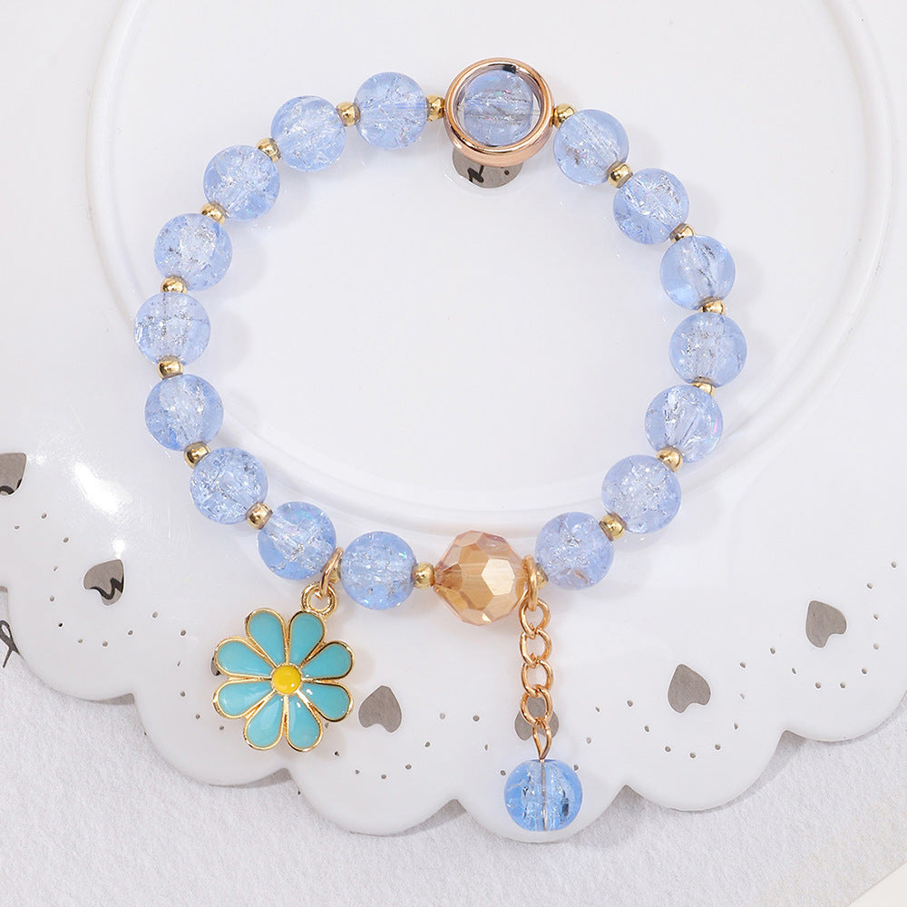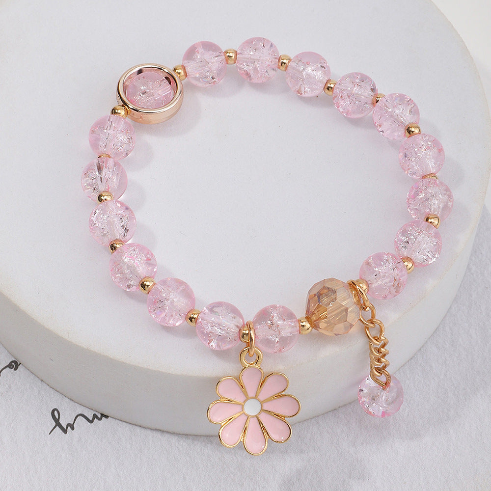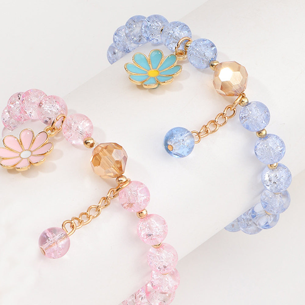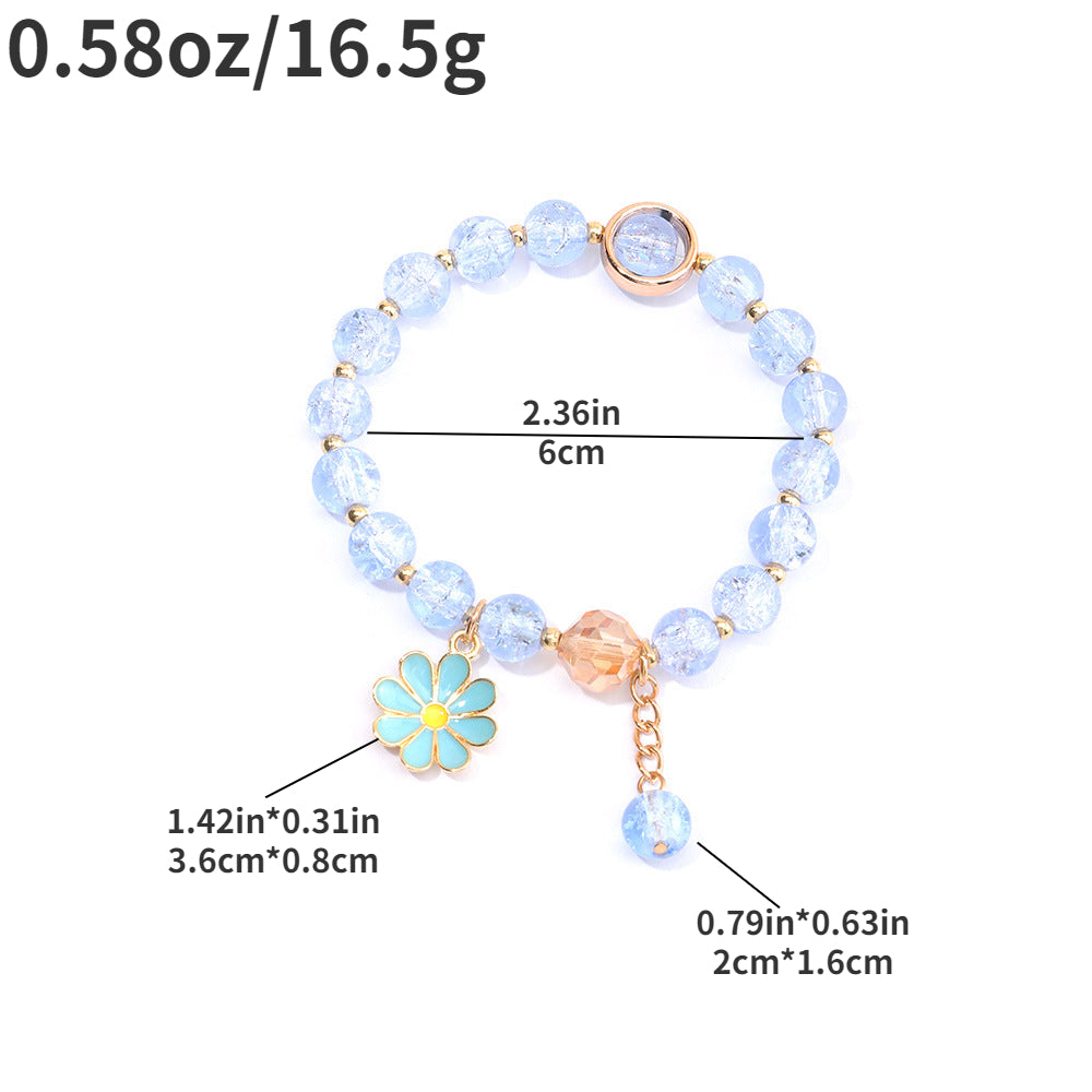 Add a touch of charm to your hand with this lovely translucent crackle beads bracelet featuring a daisy flower shape pendant. This hand jewelry decor is a perfect accessory for any occasion.