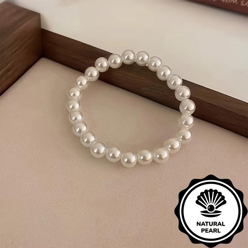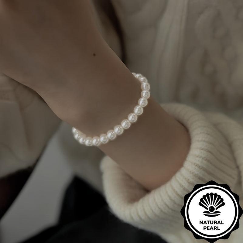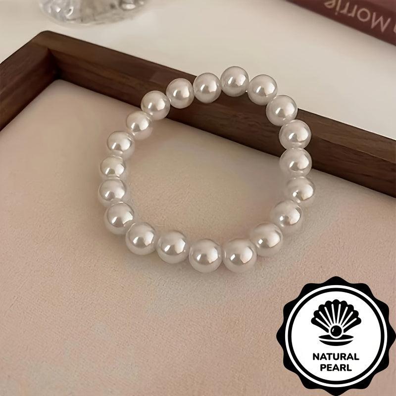 Elegant 8mm & 10mm creamy freshwater pearls bracelet perfect for Mother's & Valentine's gift, wedding banquets, and everyday elegance.