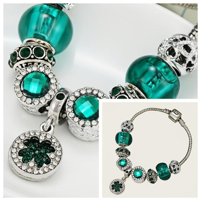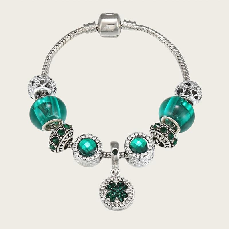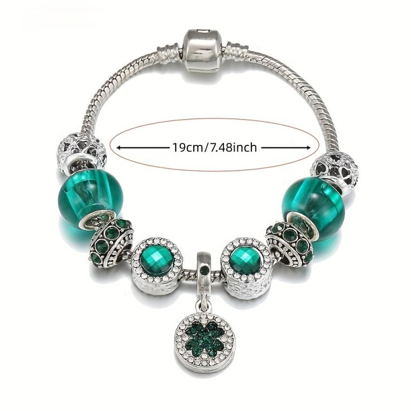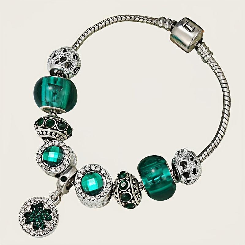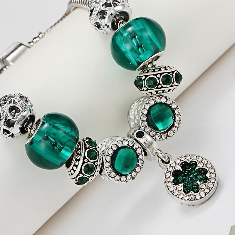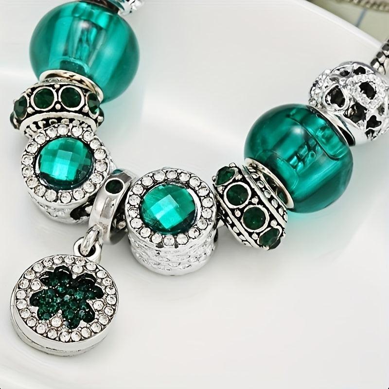 Green Forest Series DIY crystal beads bracelet with silver plated alloy and rhinestone mosaic design, perfect for daily wear in all seasons.