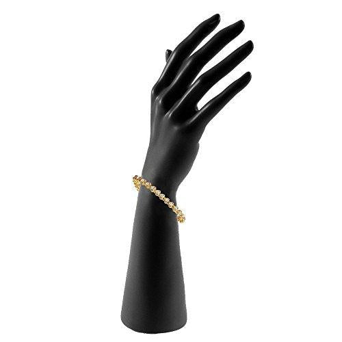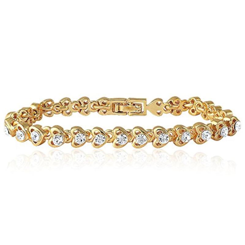 Elegant and delicate plated crystal bracelet featuring tiny heart charms.