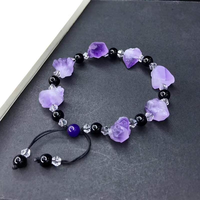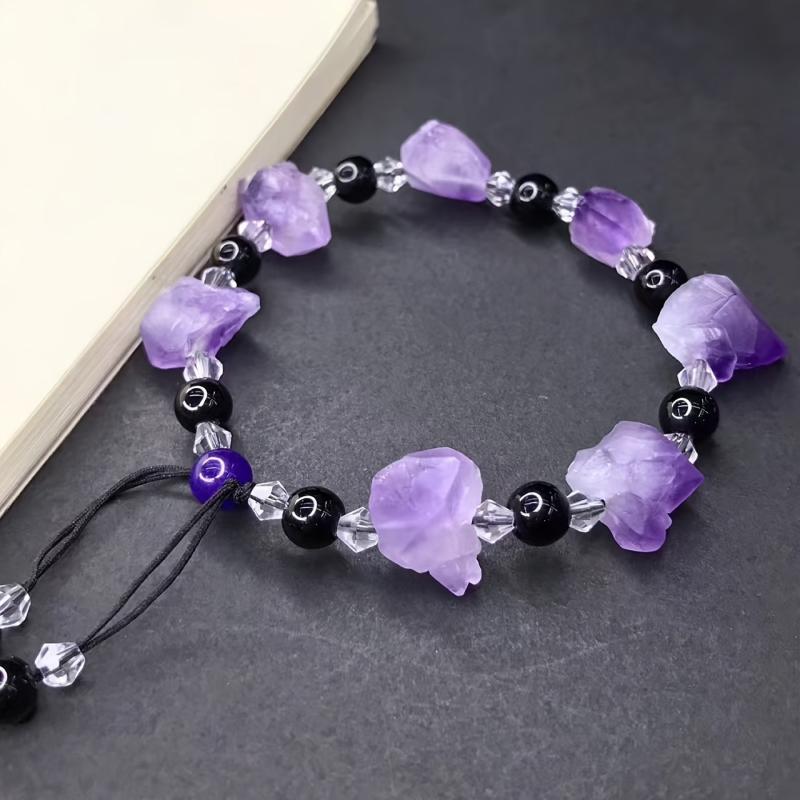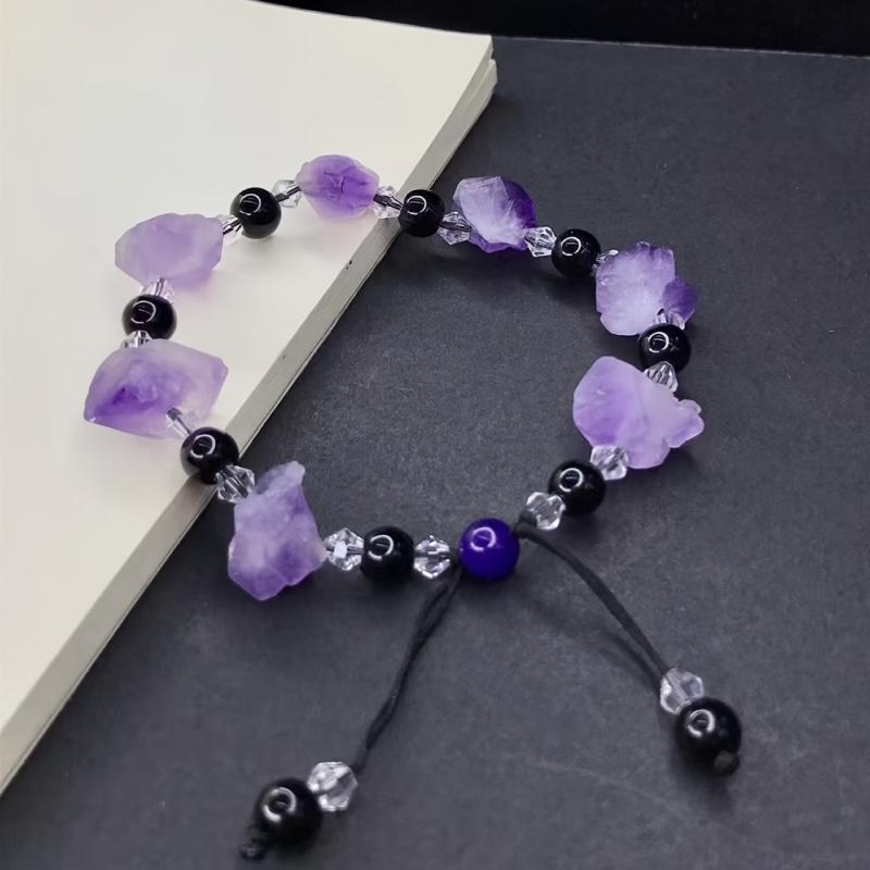 Elegant crystal mosaic bracelet featuring natural purple rope with synthetic fiber for a fashionable daily wear accessory. Perfect for any season.