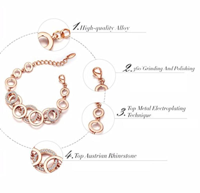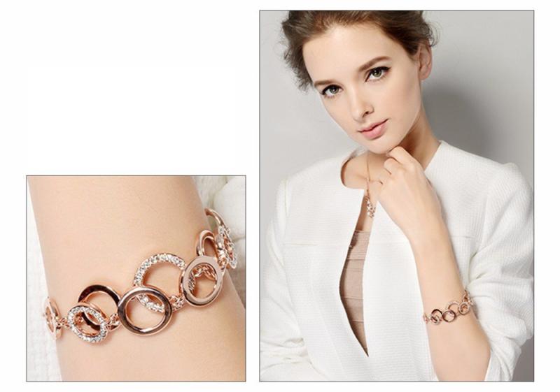 Elegant crystal bracelet with rose plated finish, perfect for adding a touch of sparkle to any outfit.