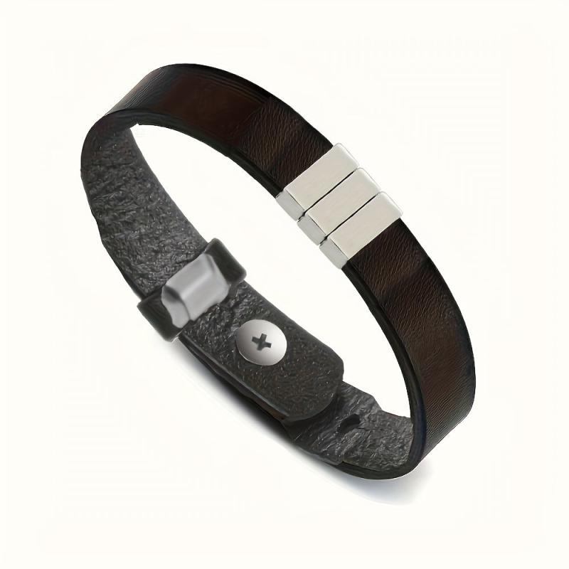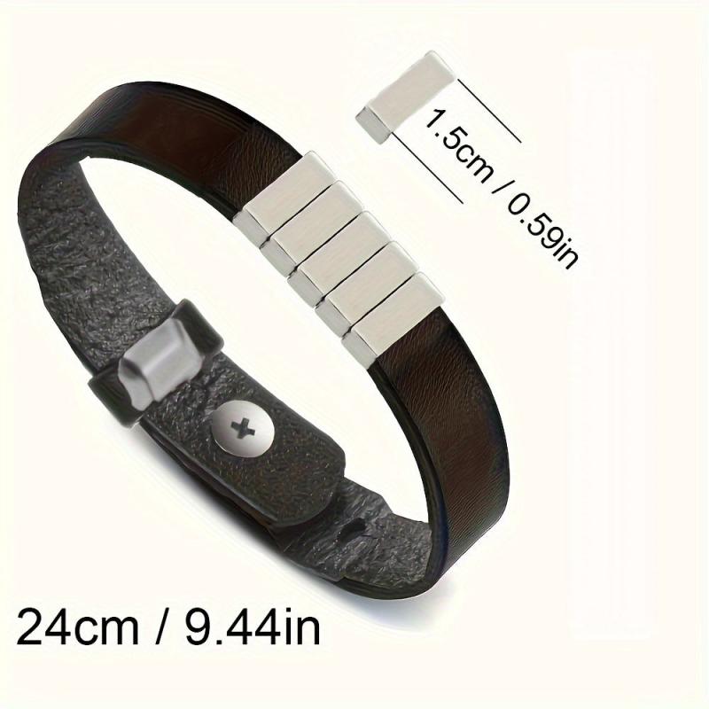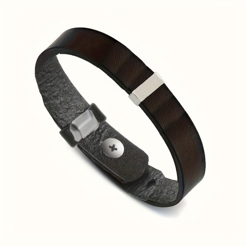 Personalized father's gift made of coffee leather and durable stainless steel accents. This stylish and casual bracelet is perfect for dad, husband, or men.