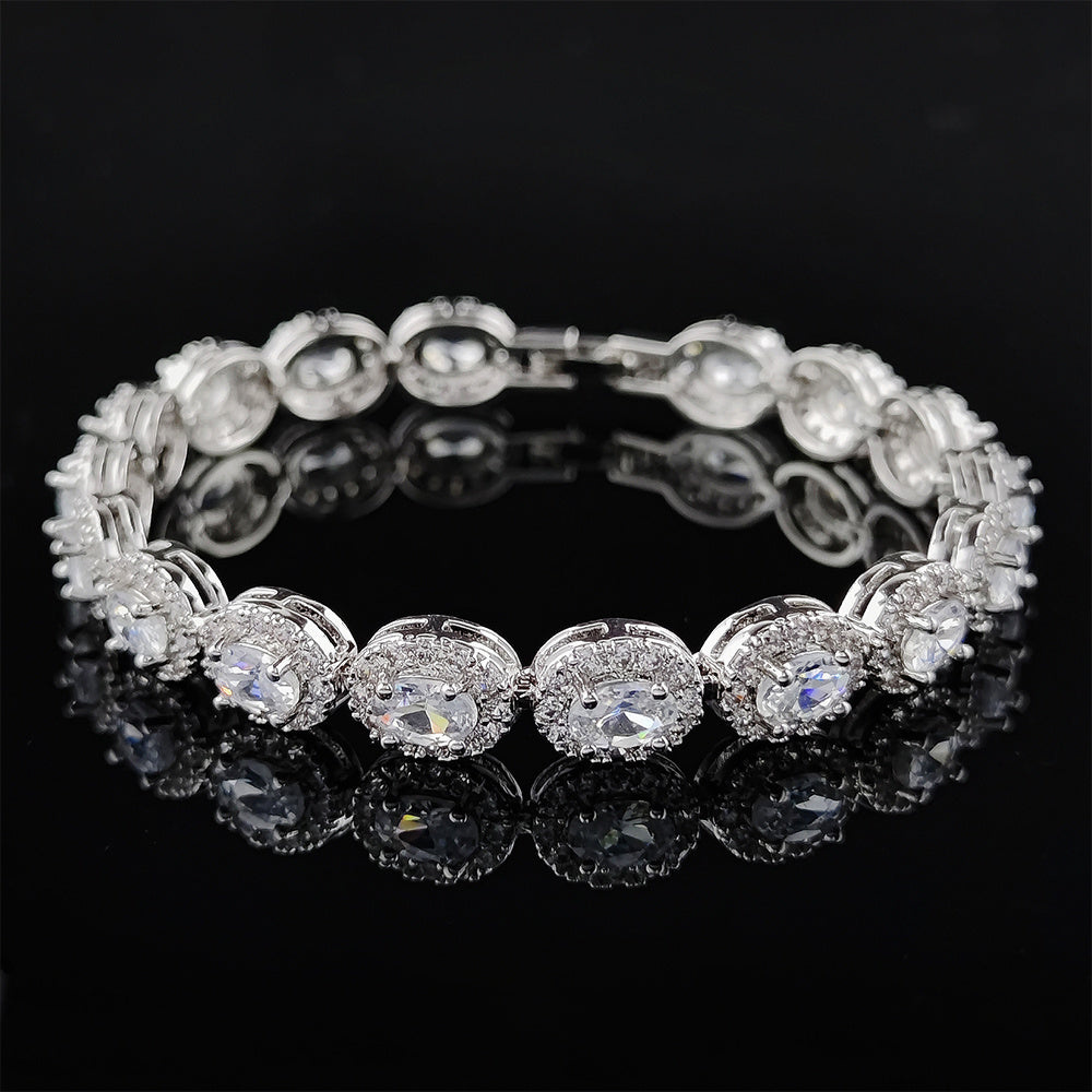 Elegant round cubic zirconia tennis bangle bracelet perfect for women. A stunning gift for anniversaries that sparkles with style.