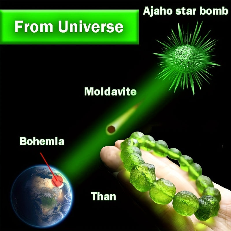 This Czech meteorite bracelet is a unique piece of jewelry that carries the energy of the cosmos. Made from raw stone crystal, it brings luck and positive vibes to the wearer.