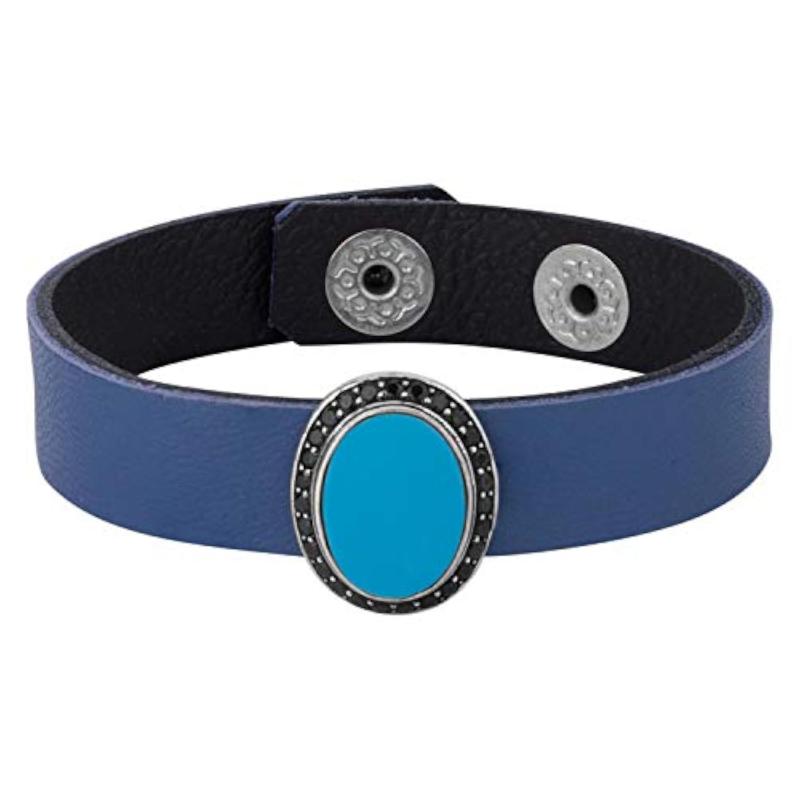 Elevate your style with this studded leather bracelet featuring sparkling cubic zirconia stones.