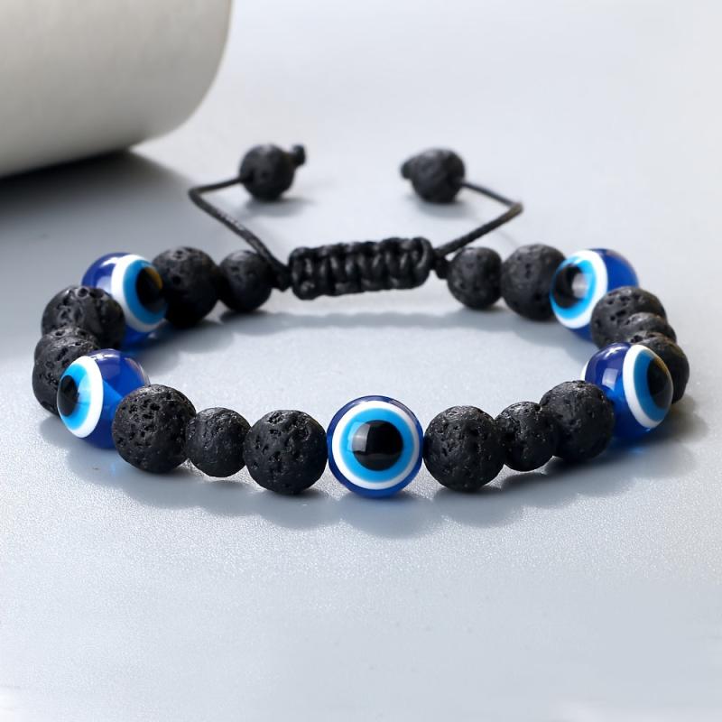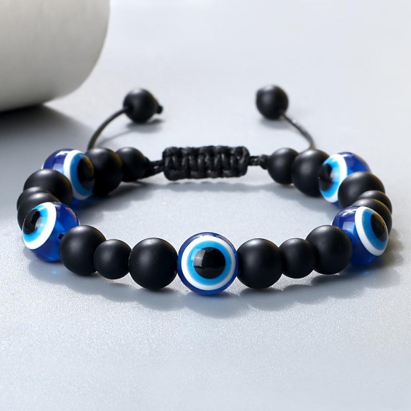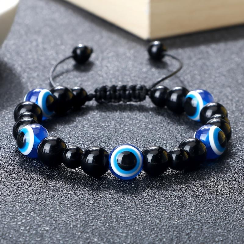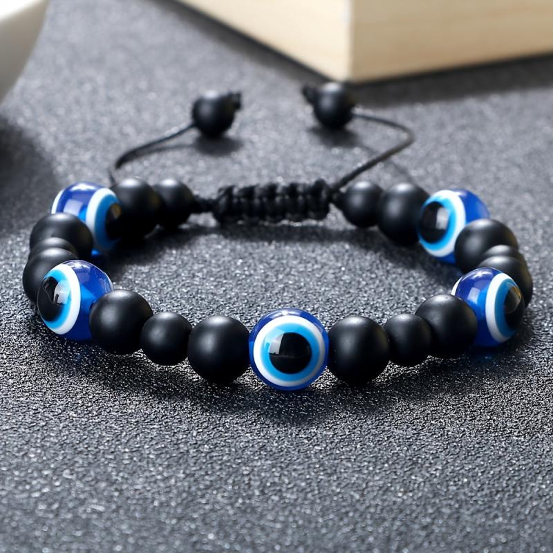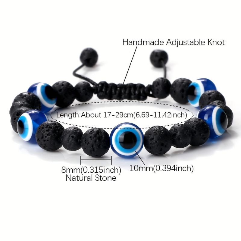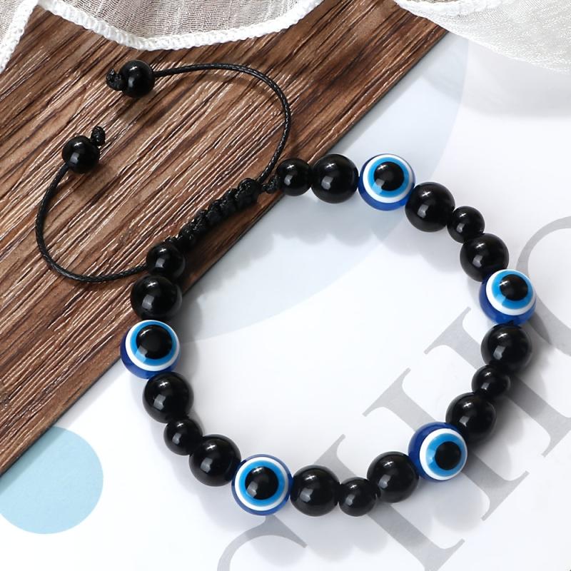Enhance your style with this fashionable Devil's Eye Bracelet. Made of natural stone, this adjustable bangle is perfect for daily wear and vacation. Its vintage style adds a unique touch to your outfit.