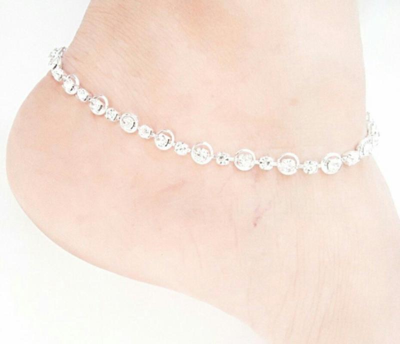 Add a touch of glamour to your ankle with this stunning diamond studded anklet. The sparkling stones will catch the light and dazzle onlookers.