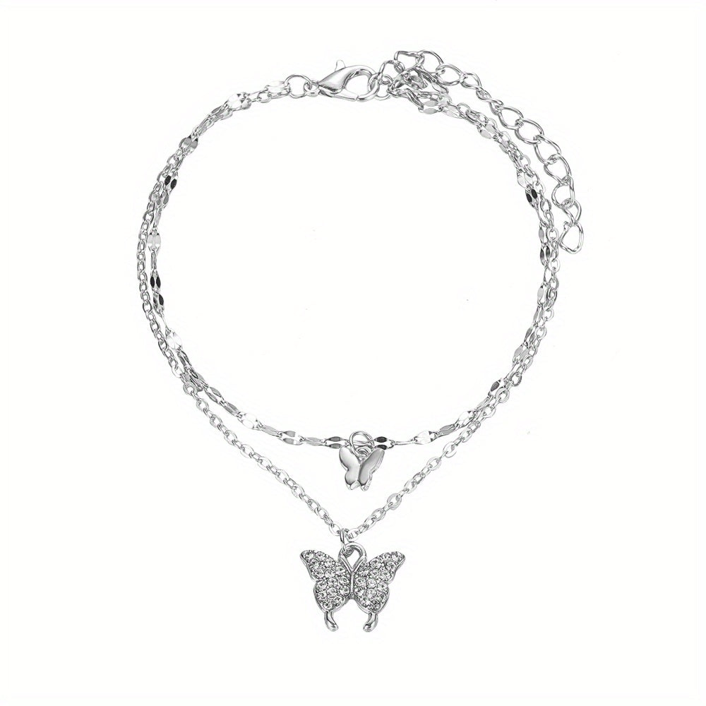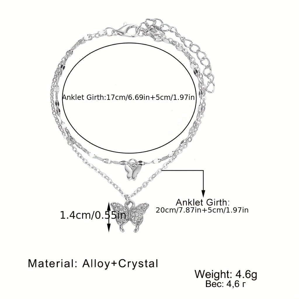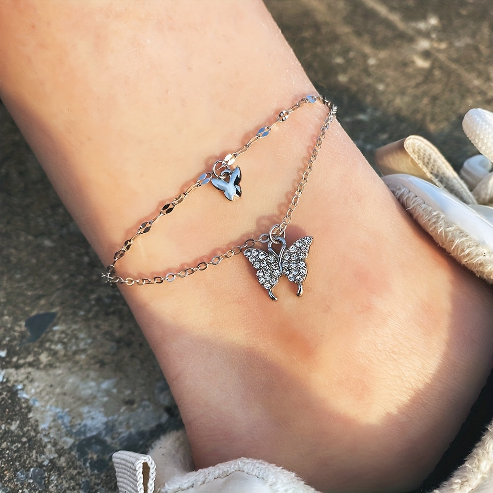 This delicate anklet features a double butterfly pendant on a thin chain, perfect for adding a touch of charm to your ankle. Great for daily wear or special occasions.