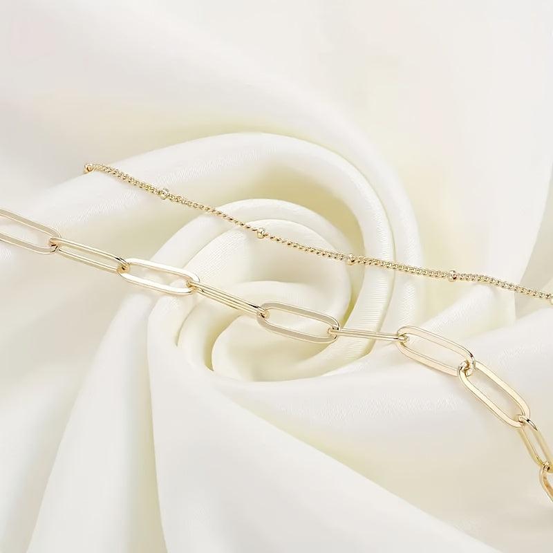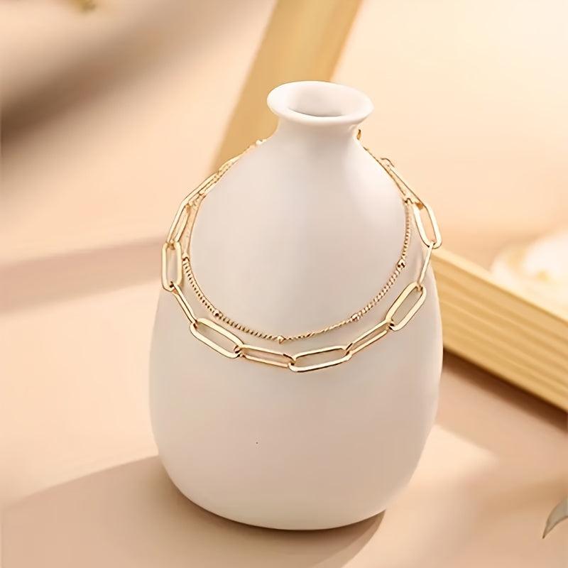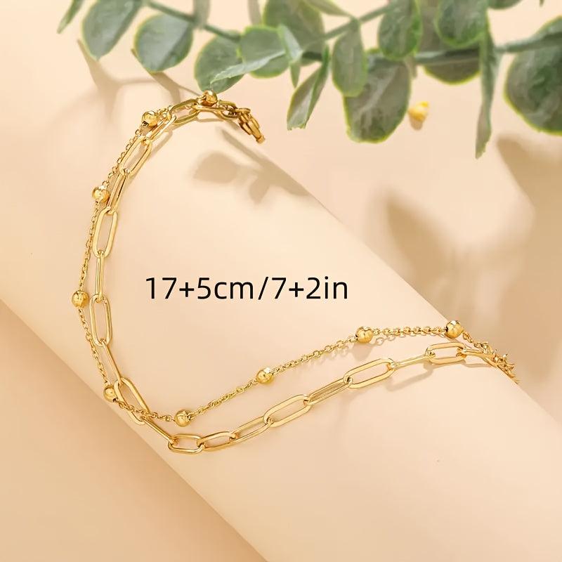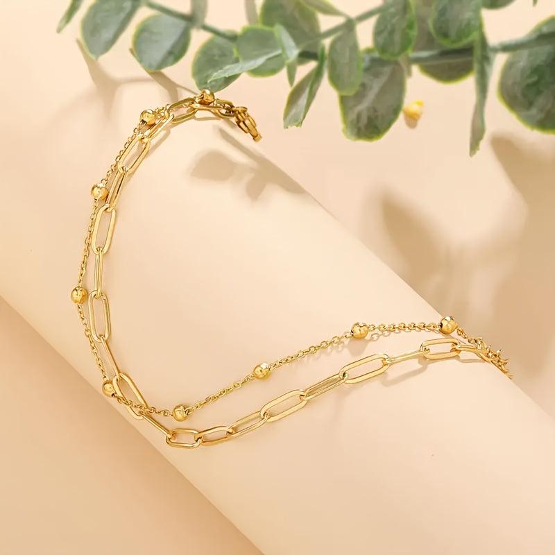 Elegant double layer bracelet made of stainless steel with a golden toned paperclip chain design. A stylish and versatile accessory for women.