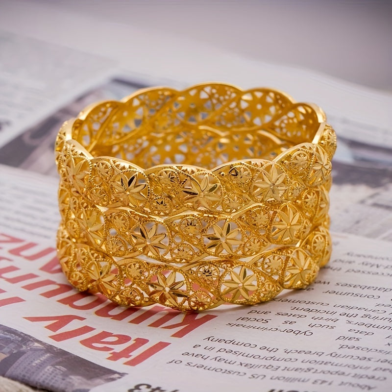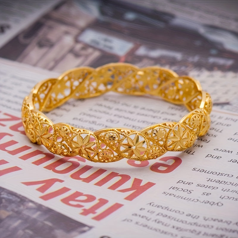 Elegant 24K plated cuff bangle perfect for brides in Dubai. Adds a touch of luxury to your wedding ensemble.