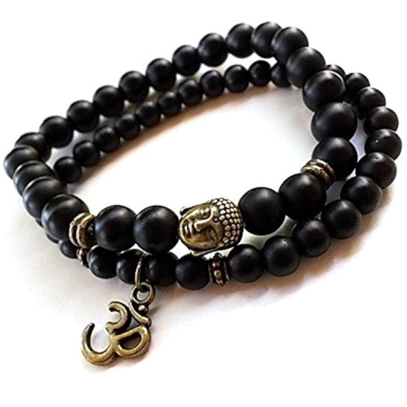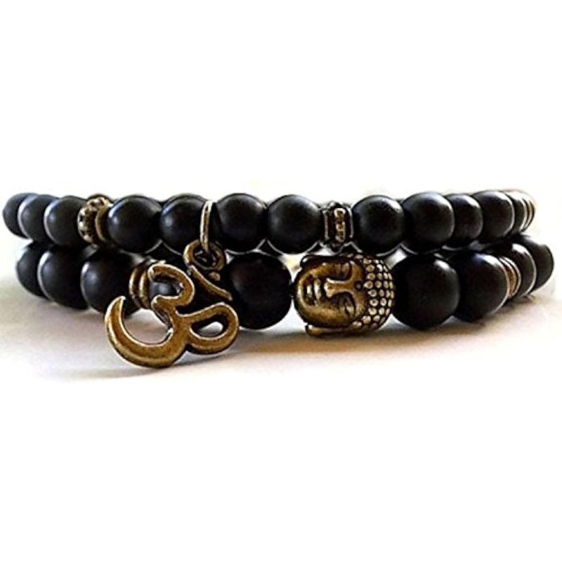 Enhance your style with this set of 2 stylish bracelets featuring yoga, meditation, Om charm, Buddha, and Reiki beads. Perfect for women.
