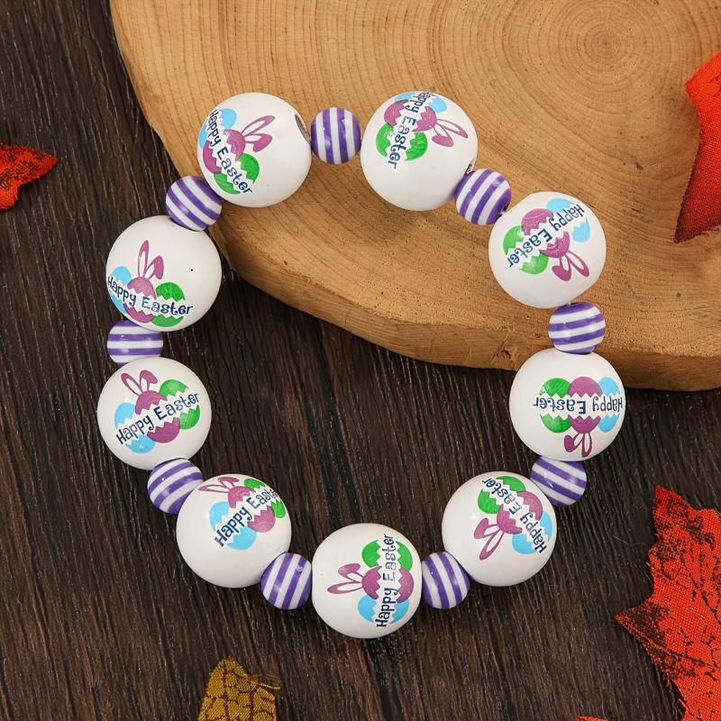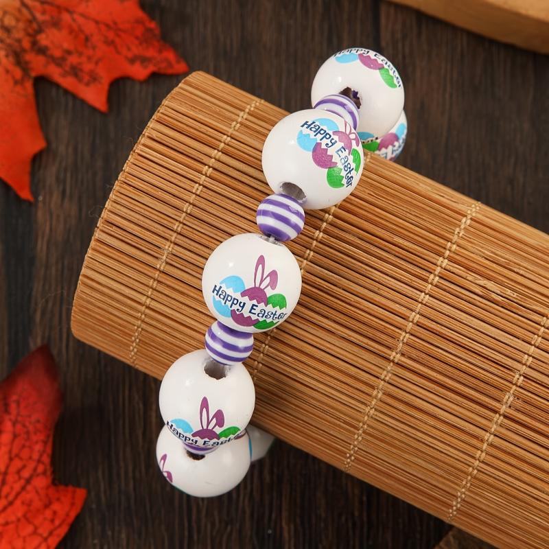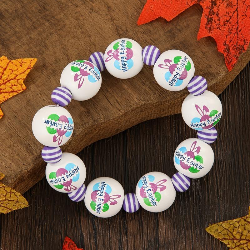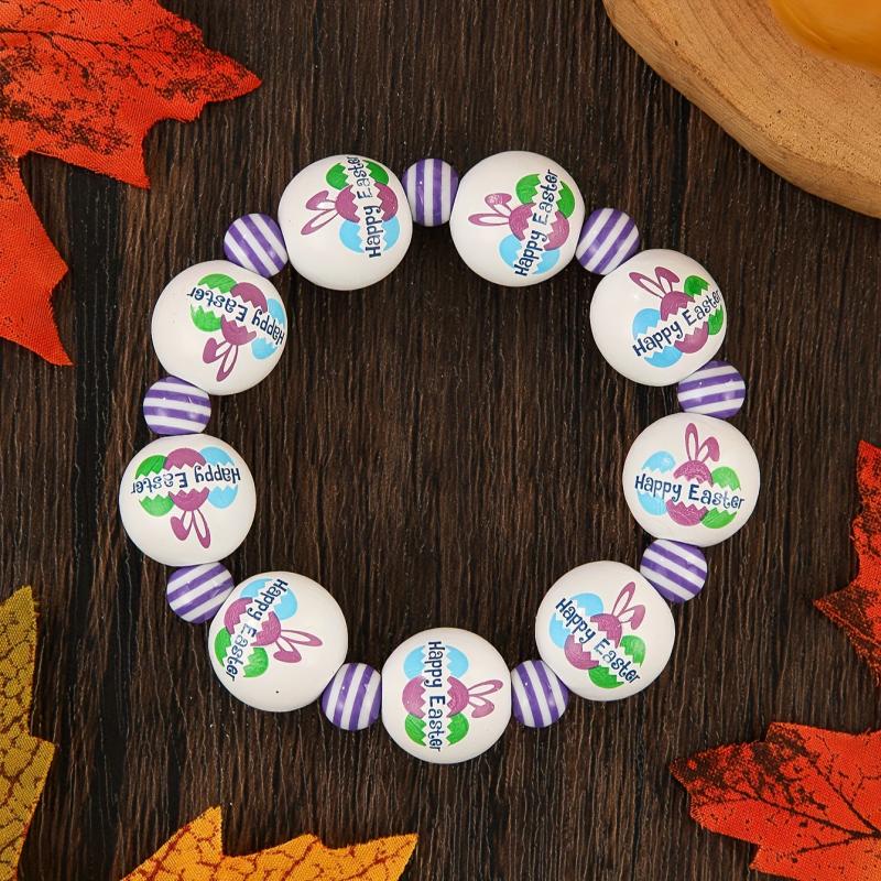Celebrate Easter in style with this beaded stretch bracelet featuring charming wood bunny and egg charms. This bracelet is perfect for adding a festive touch to your holiday outfit.