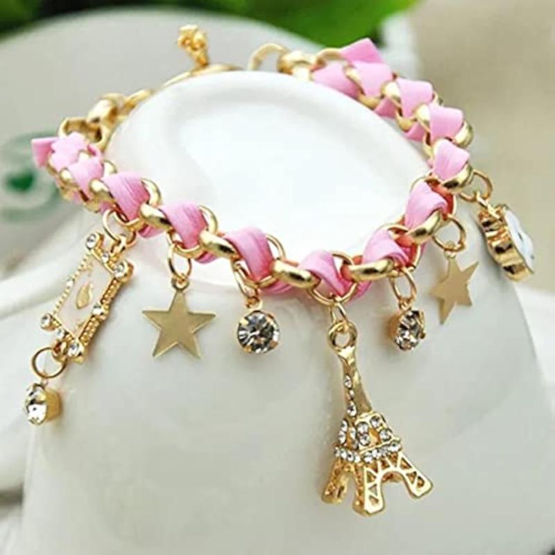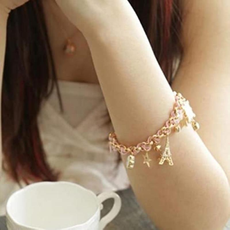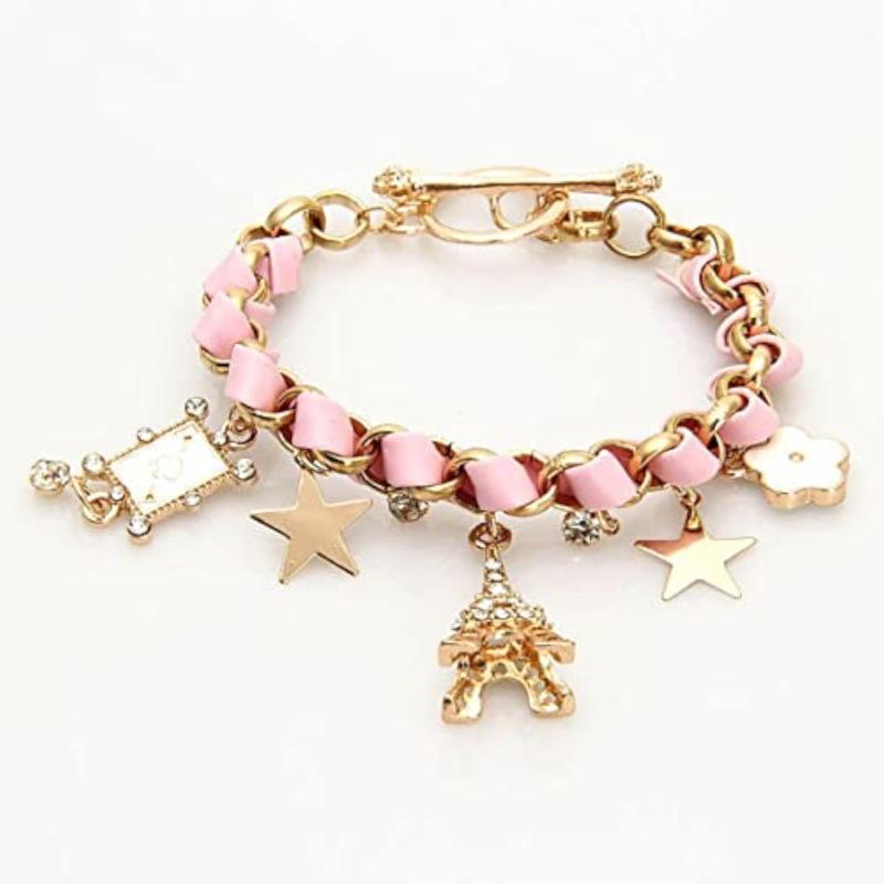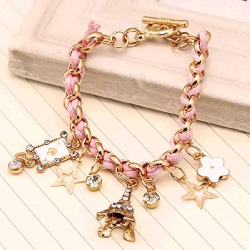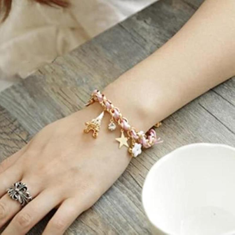 Capture the essence of Paris with this stunning charm bracelet featuring Eiffel Tower accents. Made with high-quality gold-plating, this bracelet is a must-have for any fashion-forward individual.