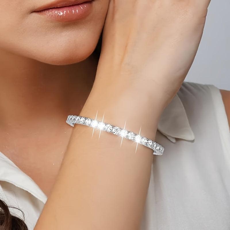 This classic tennis bracelet features 4mm 5A cubic zirconia stones and comes in an elegant box. Perfect for women who love timeless elegance.