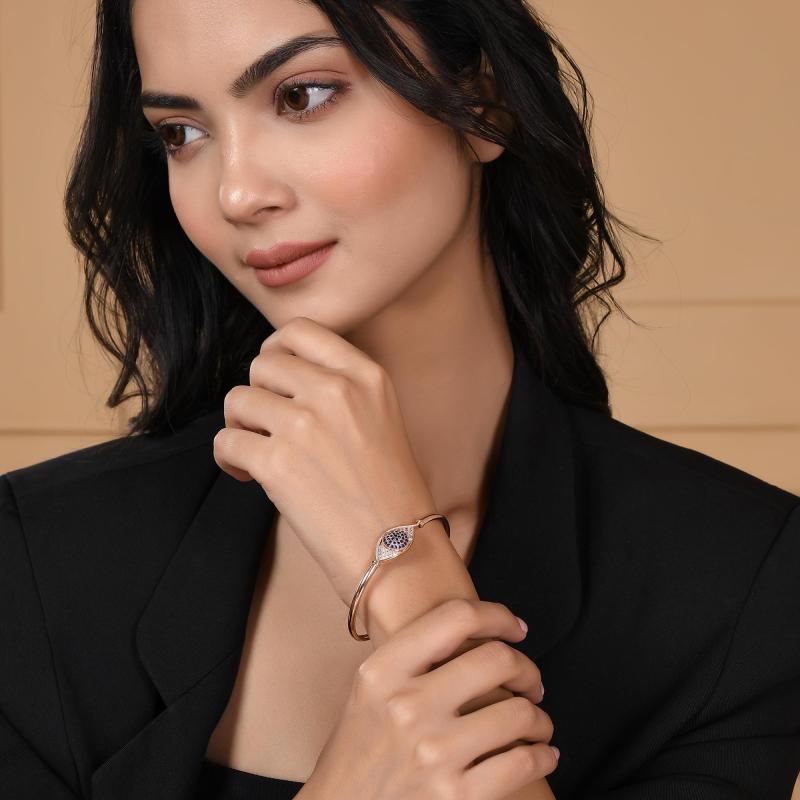 Add a touch of sparkling elegance to your look with this evil eye bracelet featuring a beautiful plating. Perfect for everyday wear or special occasions.