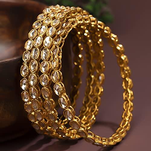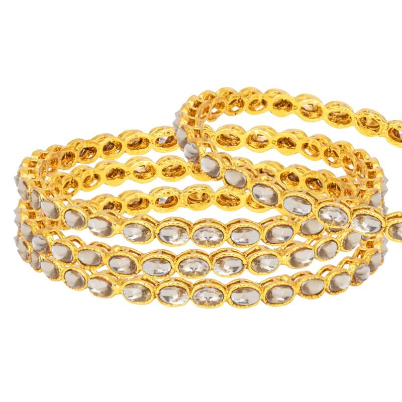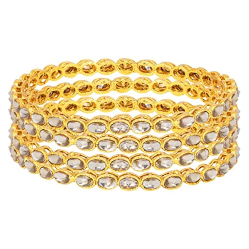 Add a touch of elegance to your outfit with this set of 4 Kundan plated bangles. Perfect for special occasions or everyday wear.