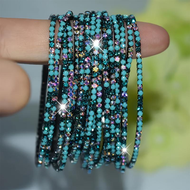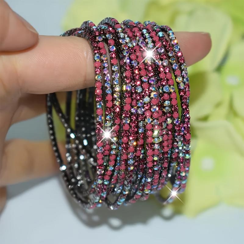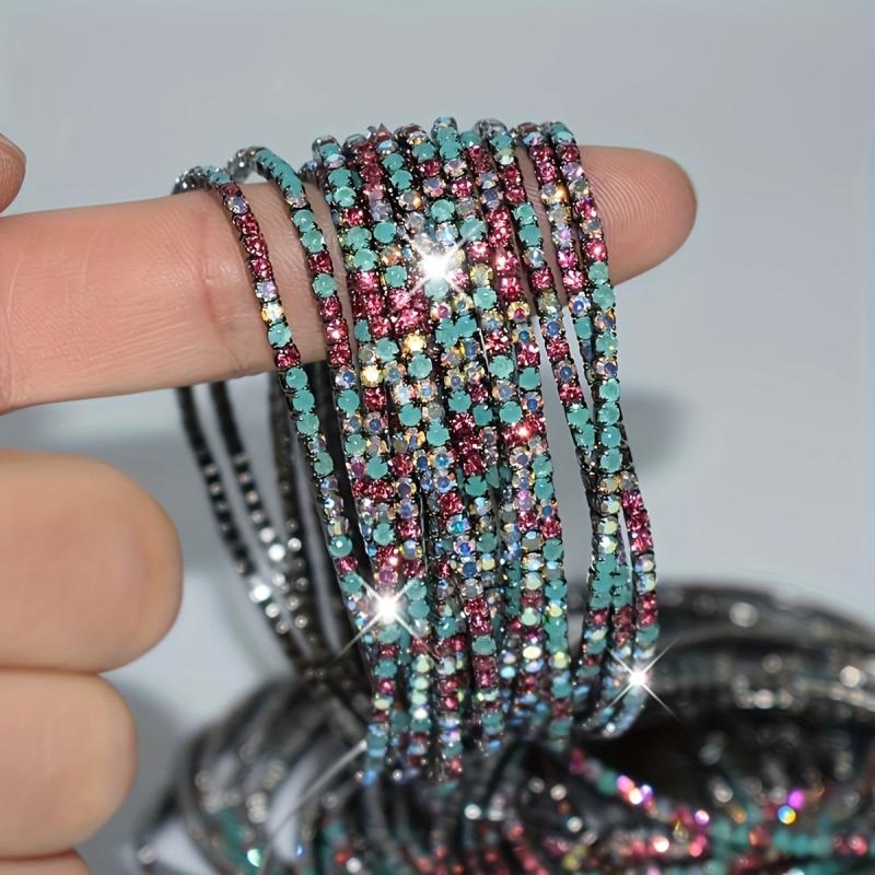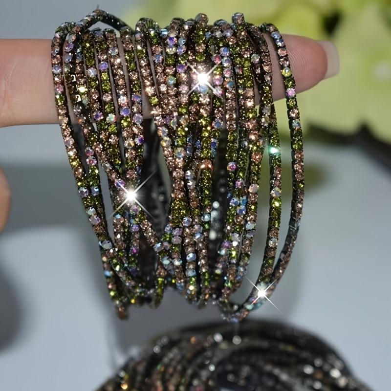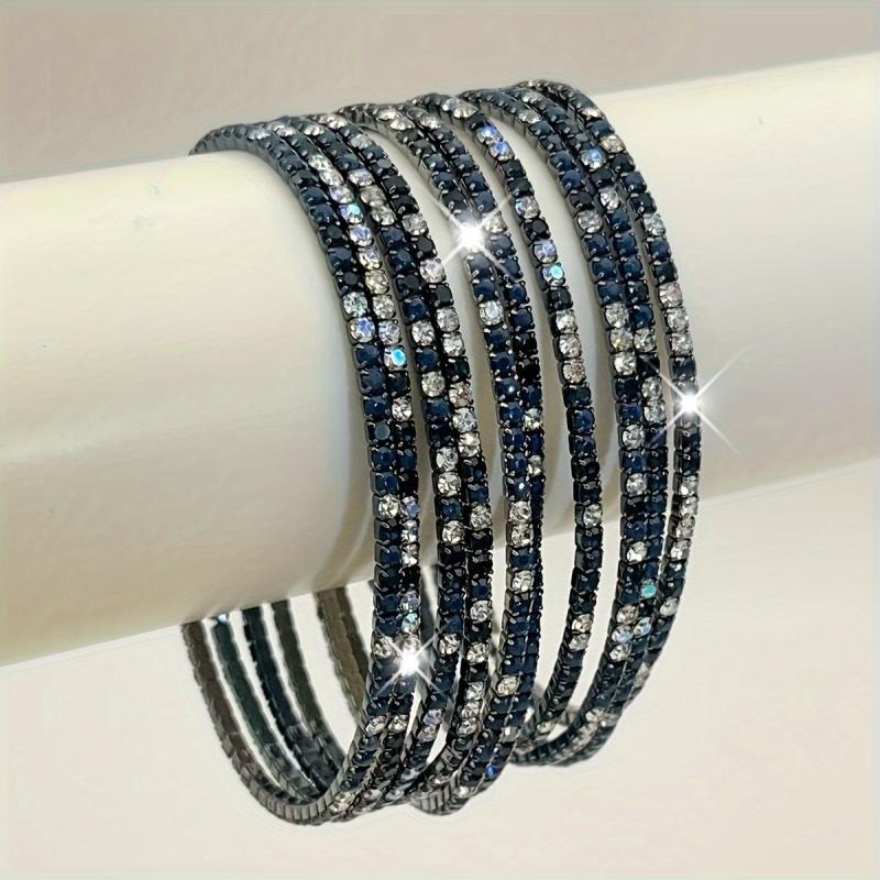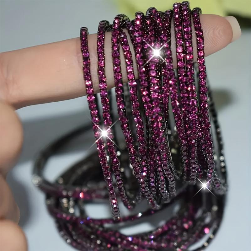This stunning tennis bracelet features sparkling rhinestones and stretches for a comfortable fit. Perfect for adding a touch of glamour to any outfit.