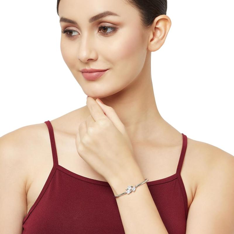 Add a touch of elegance with this stunning rhodium bracelet featuring prong zircons. The perfect accessory for any occasion.