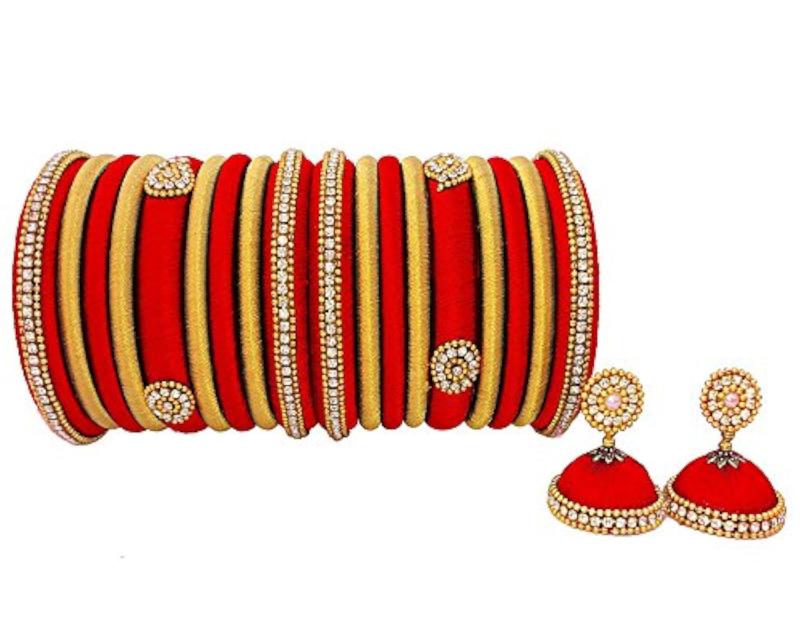 Complete your outfit with this elegant silk bangle that perfectly complements your dress. The soft fabric adds a touch of luxury to your look.