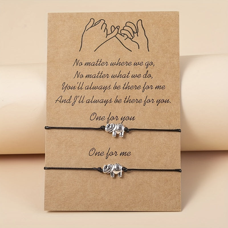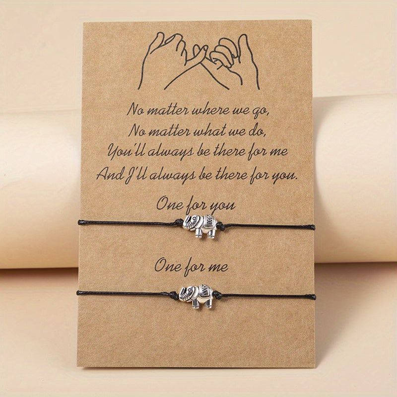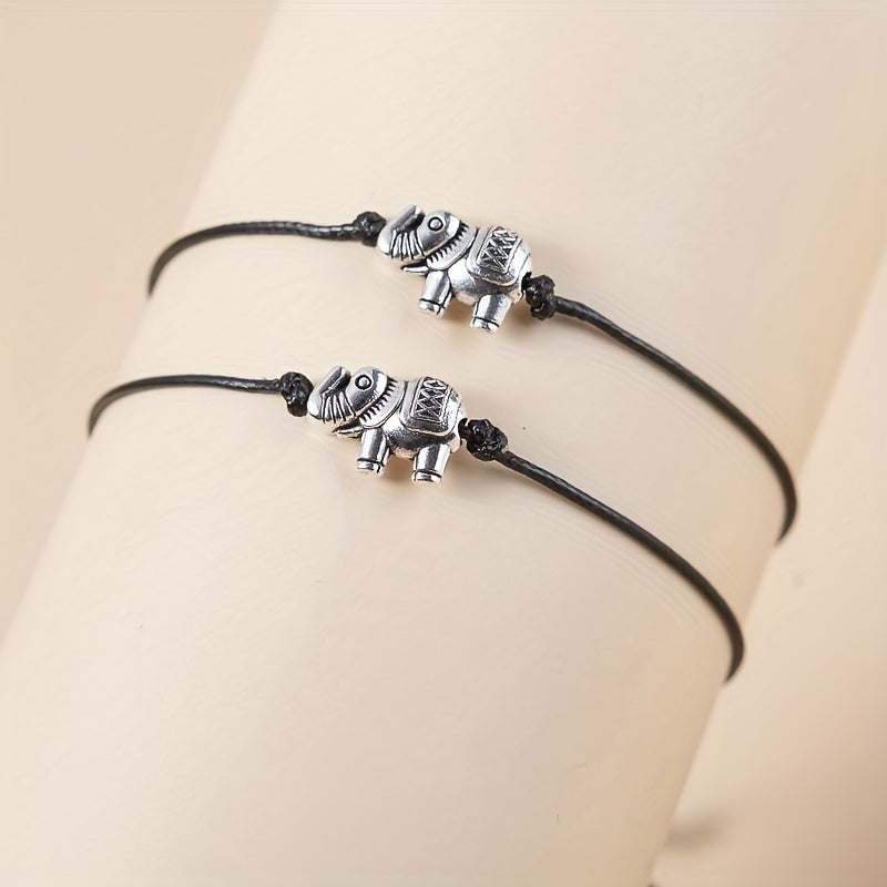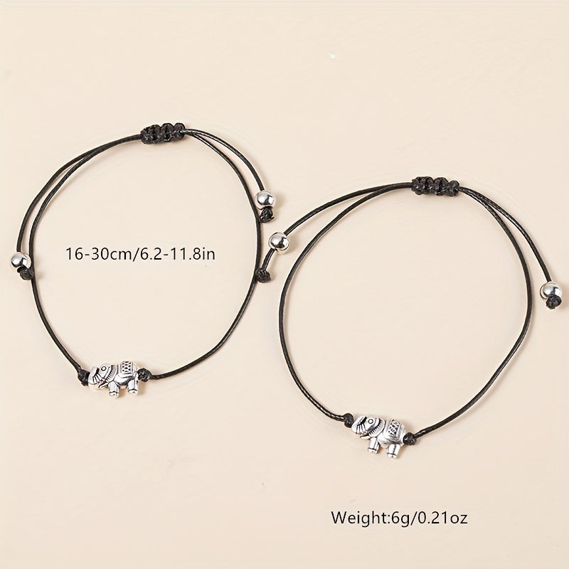 Add a touch of style to your daily wear with this elegant elephant string bracelet set. Perfect for women and girls, this 2-piece hand jewelry decor is a must-have accessory.