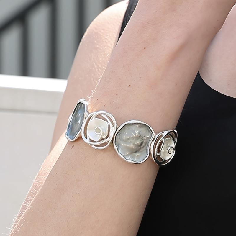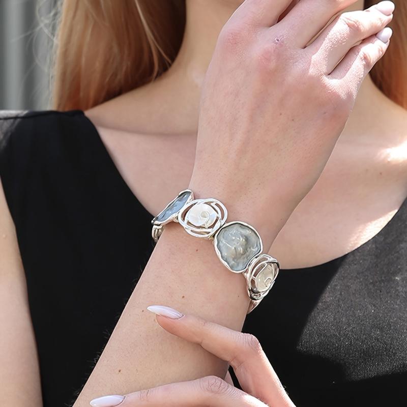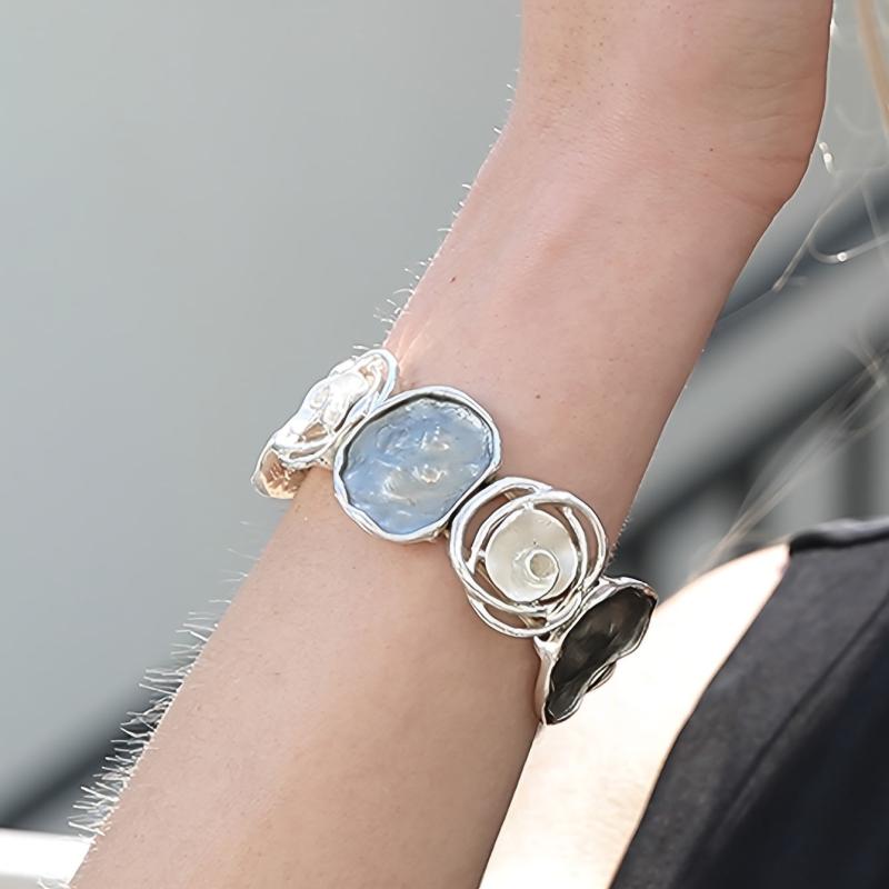 Add a touch of bohemian style with this round flower and geometric enamel stretch bracelet. Made from high-quality zinc alloy, this thin elastic bangle is the perfect party gift for her.