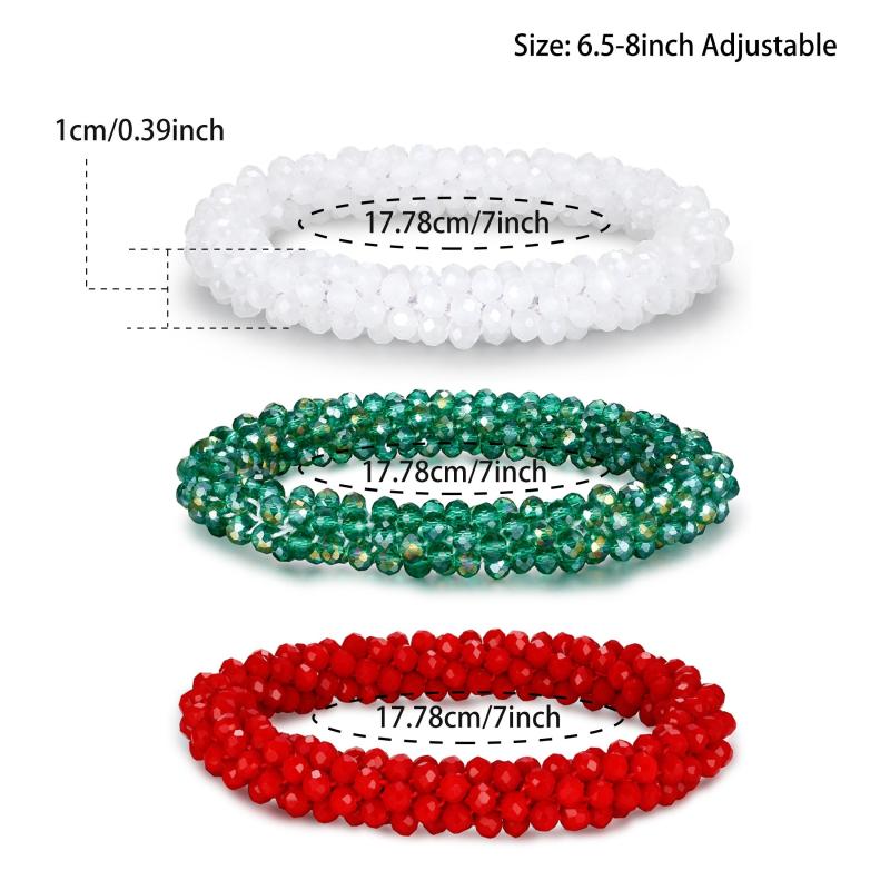 This holiday gift set features 3 beaded bracelets with artificial crystals. Elastic design for easy wear and suitable for both women and men.