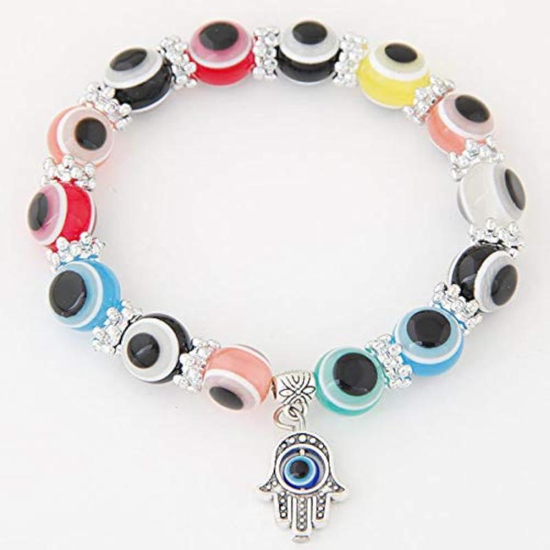 This stylish bracelet features an evil eye charm for protection against negative energy.
